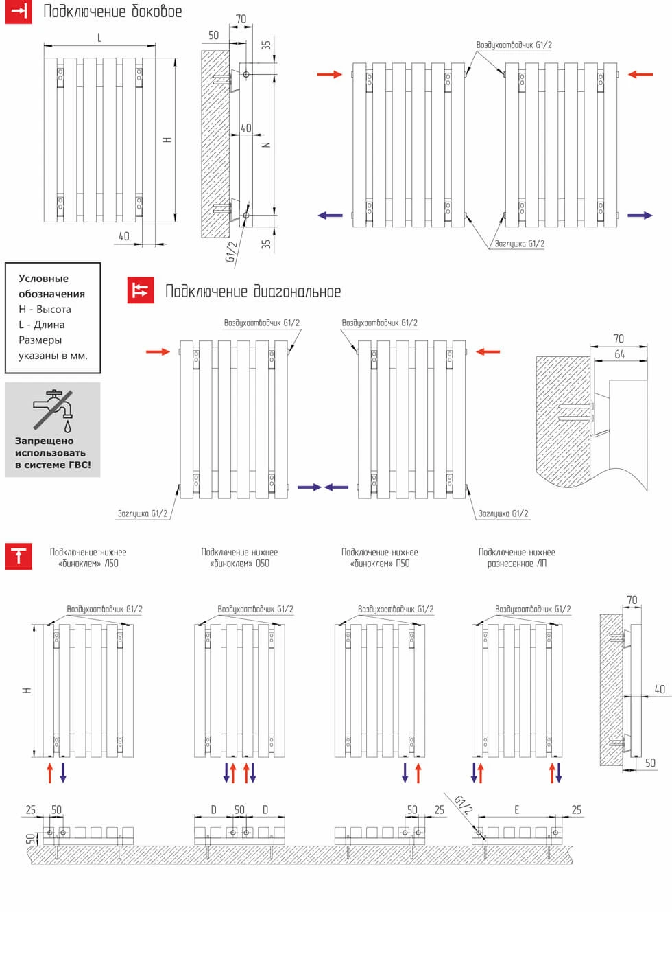 боковое, нижнее