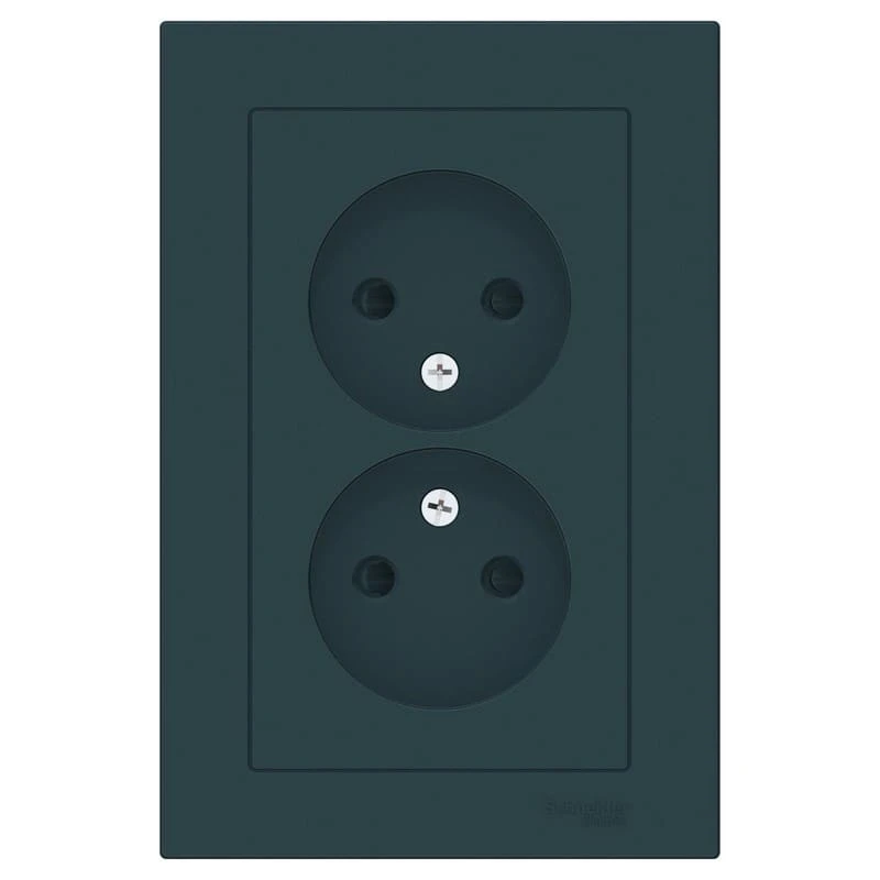 Дизайнерская двойная розетка без заземления, со шторками ATN000822 Schneider Electric цвет изумруд - это прекрасное решение для любого современного интерьера: классика, лофт, модерн, минимализм, винтаж и другие.