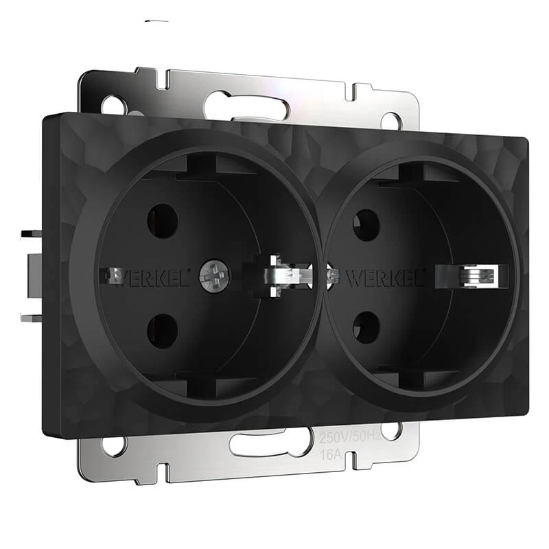 Дизайнерская двойная розетка с заземлением W1272008 черный бренд Werkel является отличным решением для современных пространств. Данная модель будет эффектно смотреться в любом интерьере и гармонично сочетаться с любыми материалами. Розетка Werkel отвечает всем необходимым стандартам и ГОСТам, имеет высокое качество, подтверждённое сертификатами соответствия.Дизайнерские модели комбинируются с любыми рамками Werkel. Совместимость дает большой простор в создании множества уникальных сочетаний. Современные роезтки Werkel гармонично впишутся как в городских квартирах, так и в загородных домах, дачах.