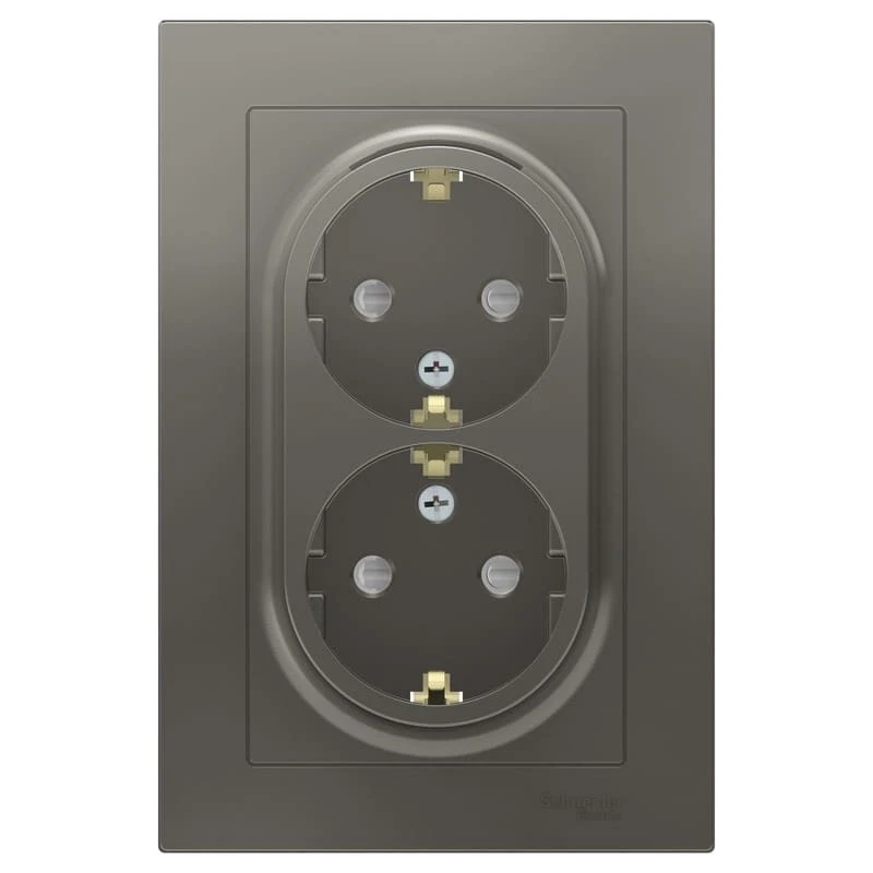 Дизайнерская двойная розетка с заземлением и шторками ATN000926 Schneider Electric цвет сталь - это прекрасное решение для любого современного интерьера: классика, лофт, модерн, минимализм, винтаж и другие.