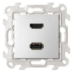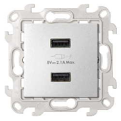 Дизайнерская розетка 2хUSB 2411090-033 Simon цвет алюминий - это прекрасное решение для любого современного интерьера: классика, лофт, модерн, минимализм, винтаж и другие.