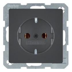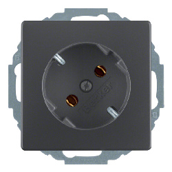 Дизайнерская розетка без заземления, со шторками 6167336086 Berker цвет антрацитовый, бархатный лак - это прекрасное решение для любого современного интерьера: классика, лофт, модерн, минимализм, винтаж и другие.