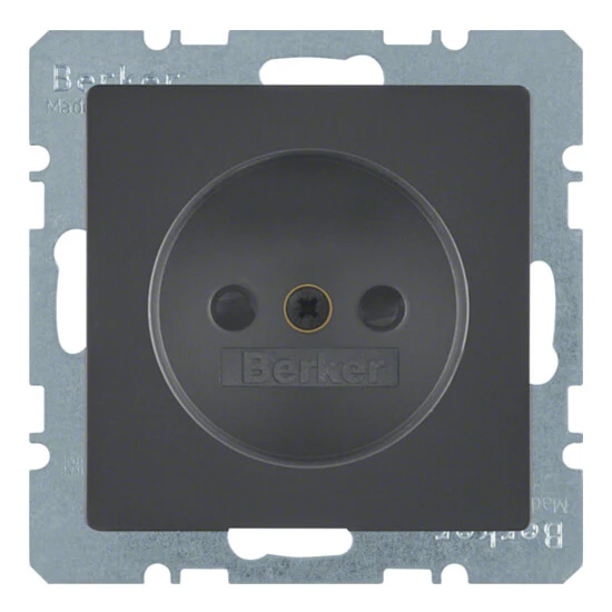 Дизайнерская розетка без заземления, со шторками 6167336086 Berker цвет антрацитовый, бархатный лак - это прекрасное решение для любого современного интерьера: классика, лофт, модерн, минимализм, винтаж и другие.