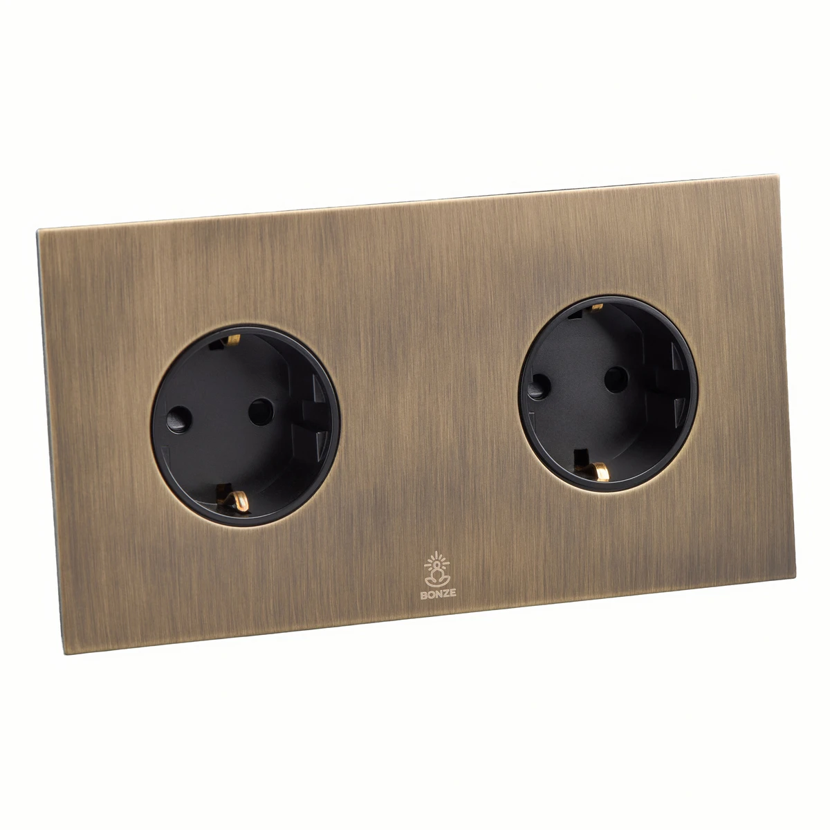 Декоративная розетка двойная с/з и шторками электрическая Aura Бронза браш, BABR2SS Bonze - это прекрасное решение для любого современного интерьера: классика, лофт, модерн, минимализм, винтаж и другие.