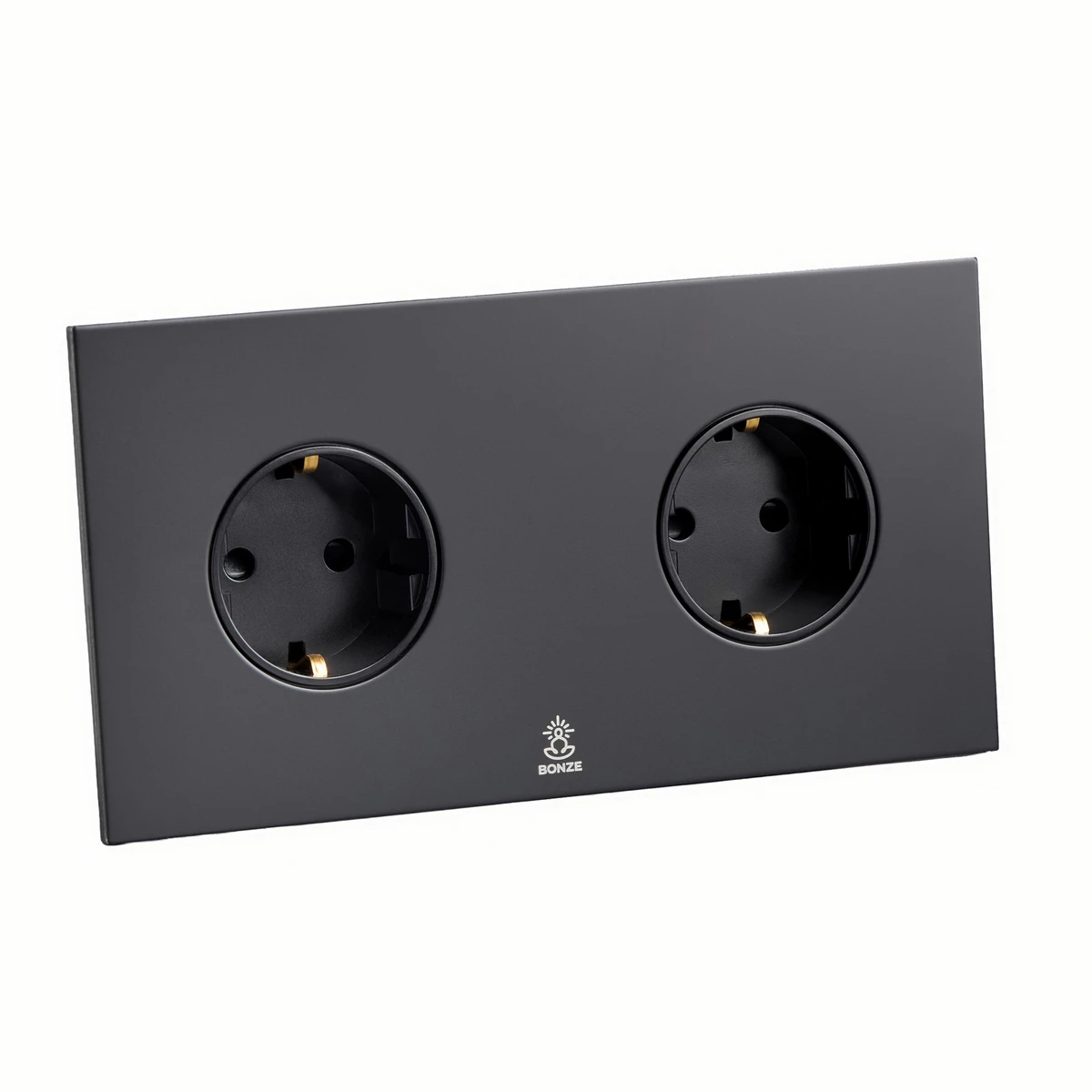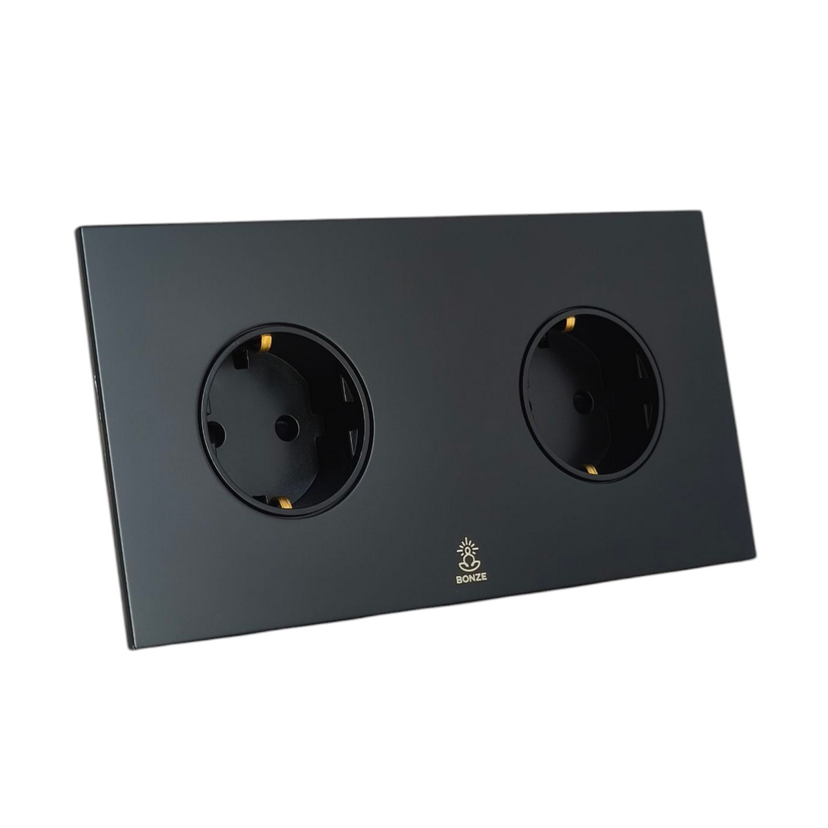 Декоративная розетка двойная с/з и шторками электрическая Aura Черный уголь, BAB2SS Bonze - это прекрасное решение для любого современного интерьера: классика, лофт, модерн, минимализм, винтаж и другие.