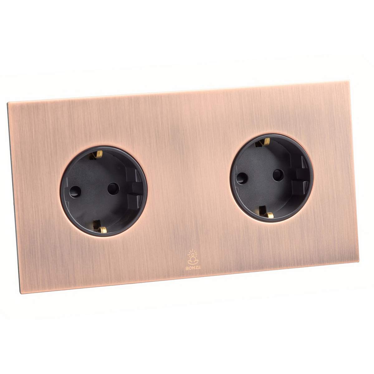 Декоративная розетка двойная с/з и шторками электрическая Aura Медь браш, BAC2SS Bonze - это прекрасное решение для любого современного интерьера: классика, лофт, модерн, минимализм, винтаж и другие.