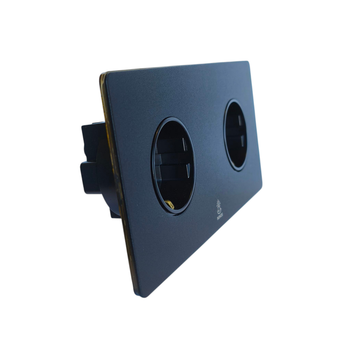 Декоративная розетка двойная с/з и шторками электрическая Vega Черный песок, BVB2SS Bonze - это прекрасное решение для любого современного интерьера: классика, лофт, модерн, минимализм, винтаж и другие.