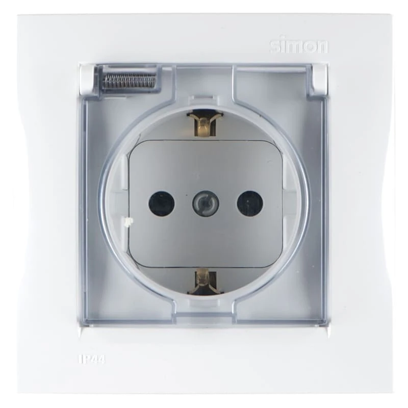 Дизайнерская розетка IP44 с заземлением, шторками и с крышкой 1590450-030 Simon цвет белый - это прекрасное решение для любого современного интерьера: классика, лофт, модерн, минимализм, винтаж и другие.
