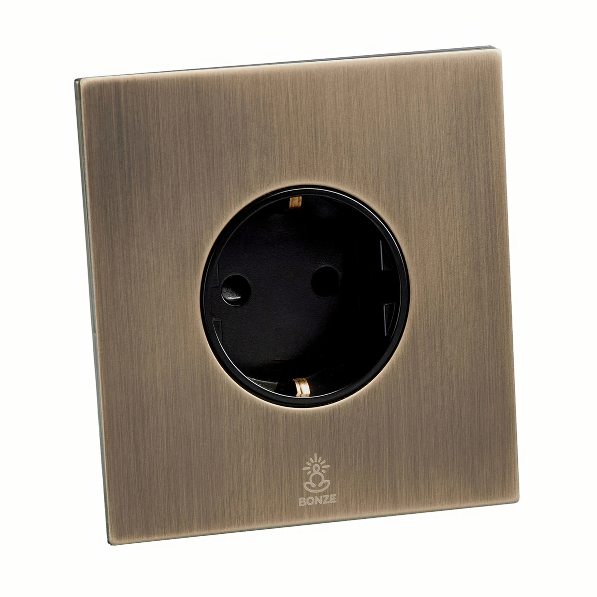 Декоративная розетка с/з и шторками электрическая Aura Бронза браш, BABR1SS Bonze - это прекрасное решение для любого современного интерьера: классика, лофт, модерн, минимализм, винтаж и другие.