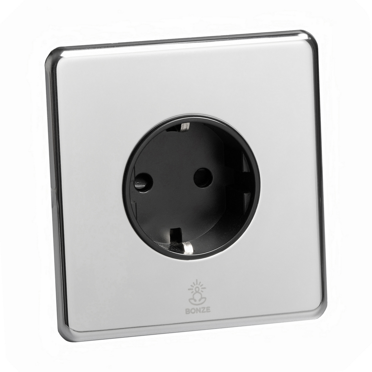 Декоративная розетка с/з и шторками электрическая Mira Зеркальный хром, BMC1SS Bonze - это прекрасное решение для любого современного интерьера: классика, лофт, модерн, минимализм, винтаж и другие.