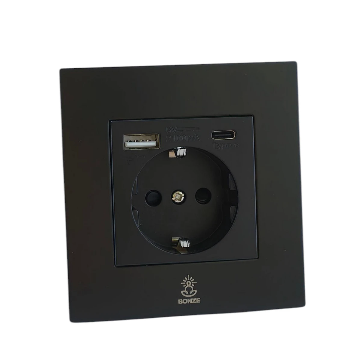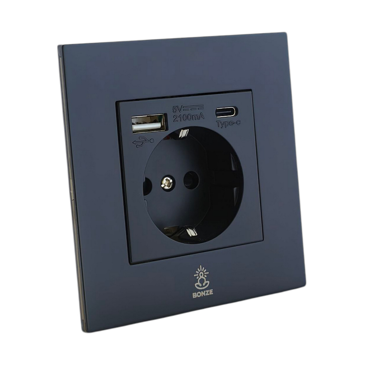 Декоративная розетка с/з и шторками электрическая с USB(A+C) Aura Черный уголь, BABSSUSBTC Bonze - это прекрасное решение для любого современного интерьера: классика, лофт, модерн, минимализм, винтаж и другие.