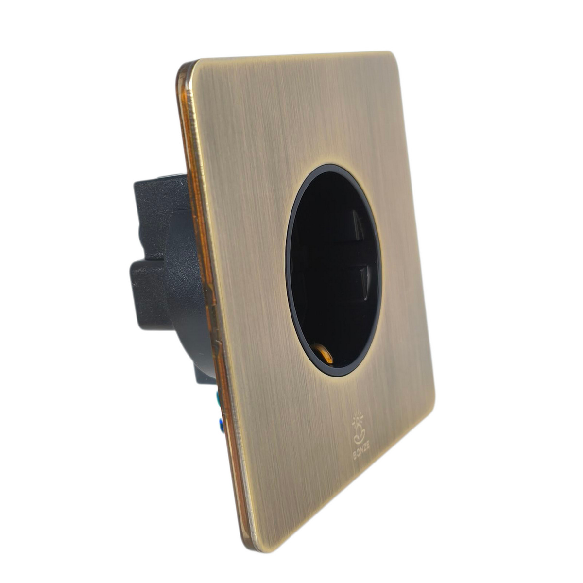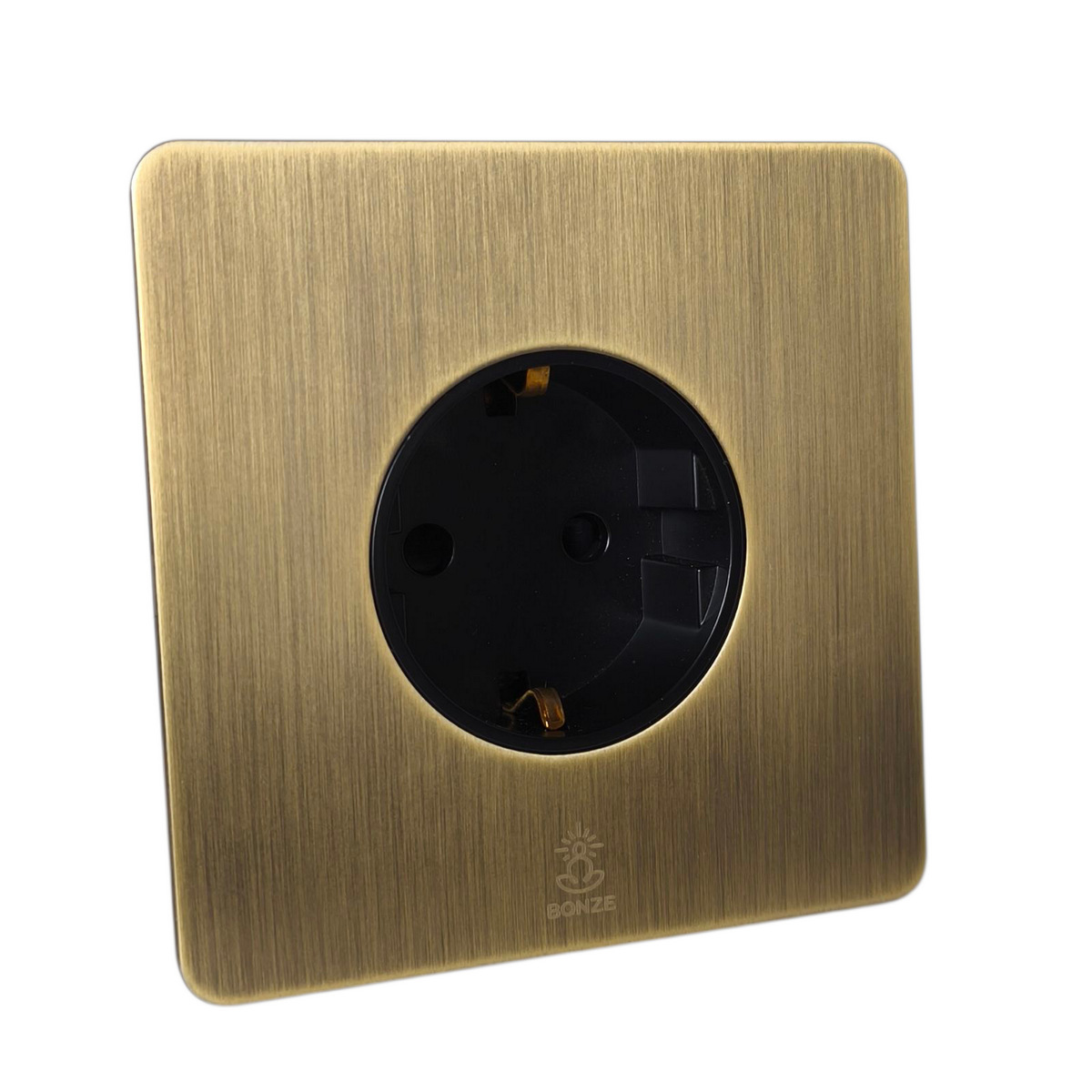 Декоративная розетка с/з и шторками электрическая Vega Бронза браш, BVBR1SS Bonze - это прекрасное решение для любого современного интерьера: классика, лофт, модерн, минимализм, винтаж и другие.