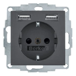 Дизайнерская розетка с заземлением и с крышкой 47441606 Berker цвет антрацитовый, матовый - это прекрасное решение для любого современного интерьера: классика, лофт, модерн, минимализм, винтаж и другие.
