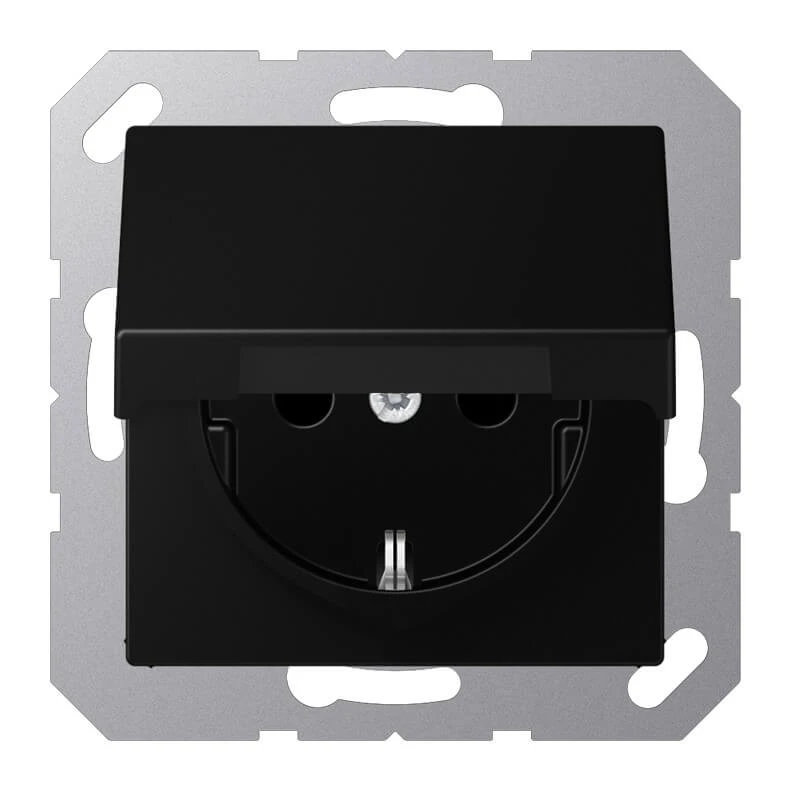 Дизайнерская розетка с заземлением и с крышкой A1520BFKLSWM Jung цвет черный матовый - это прекрасное решение для любого современного интерьера: классика, лофт, модерн, минимализм, винтаж и другие.
