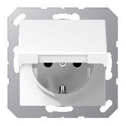 Дизайнерская розетка с заземлением и шторками A1520KIWW Jung цвет белый - это прекрасное решение для любого современного интерьера: классика, лофт, модерн, минимализм, винтаж и другие.