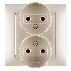 Дизайнерская розетка с заземлением и шторками, двойная 1590451-034 Simon цвет шампань - это прекрасное решение для любого современного интерьера: классика, лофт, модерн, минимализм, винтаж и другие.