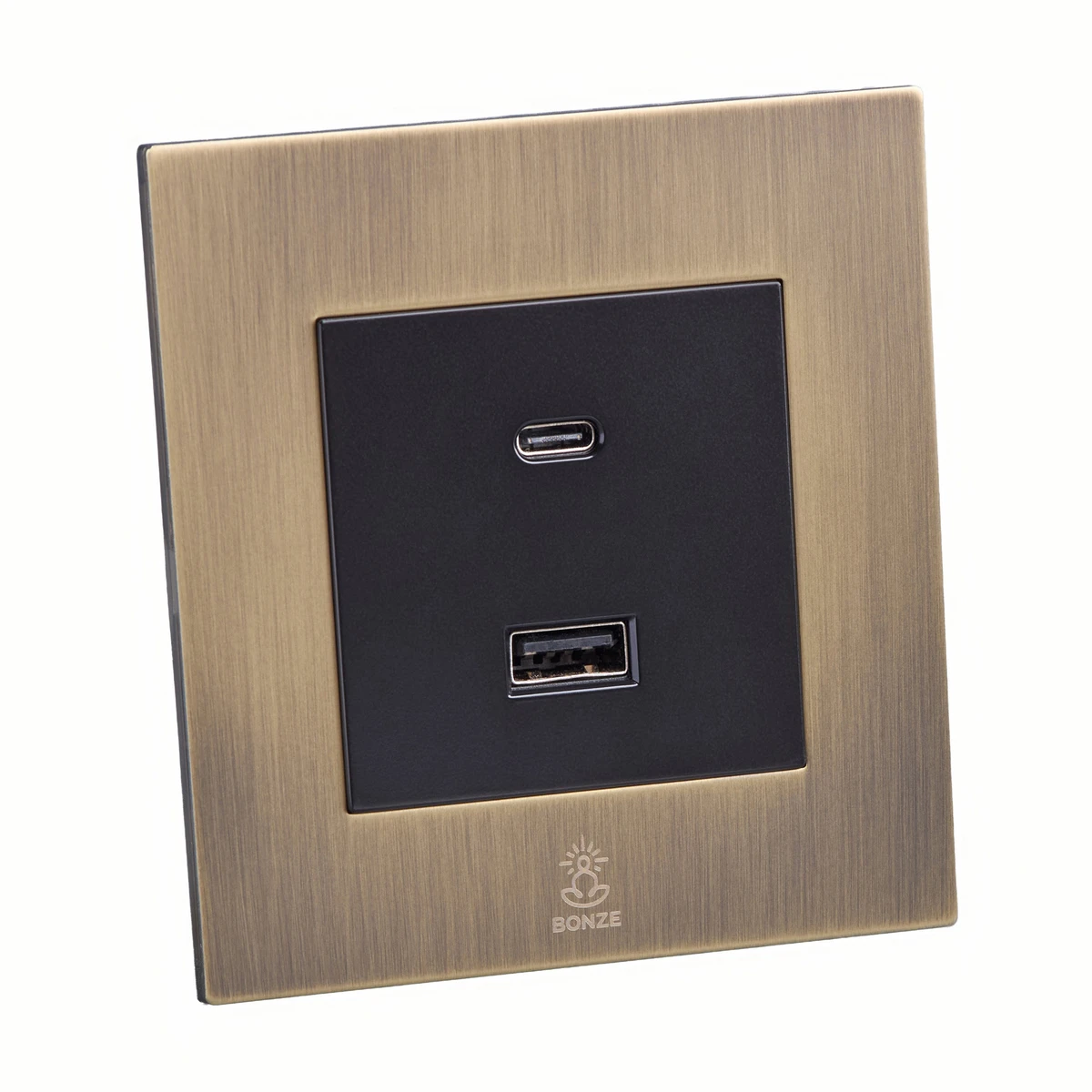 Декоративная розетка USB A + USB C Aura Бронза браш, BABRUSBTC Bonze - это прекрасное решение для любого современного интерьера: классика, лофт, модерн, минимализм, винтаж и другие.