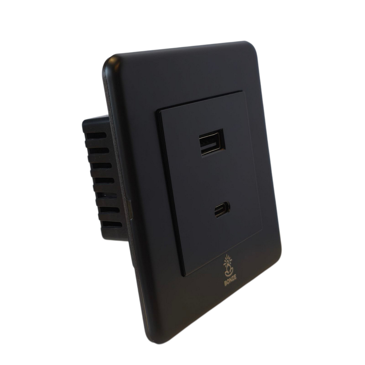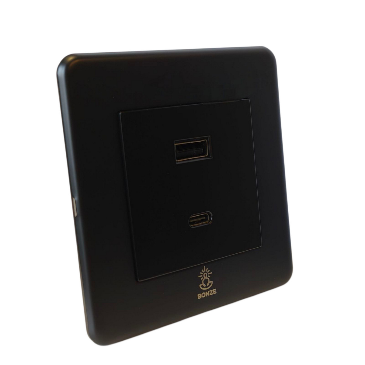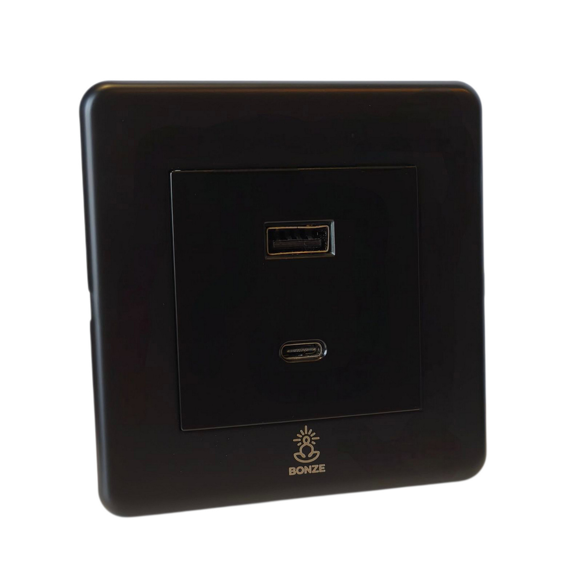 Декоративная розетка USB A + USB C Mira Черный уголь, BMBUSBTC Bonze - это прекрасное решение для любого современного интерьера: классика, лофт, модерн, минимализм, винтаж и другие.