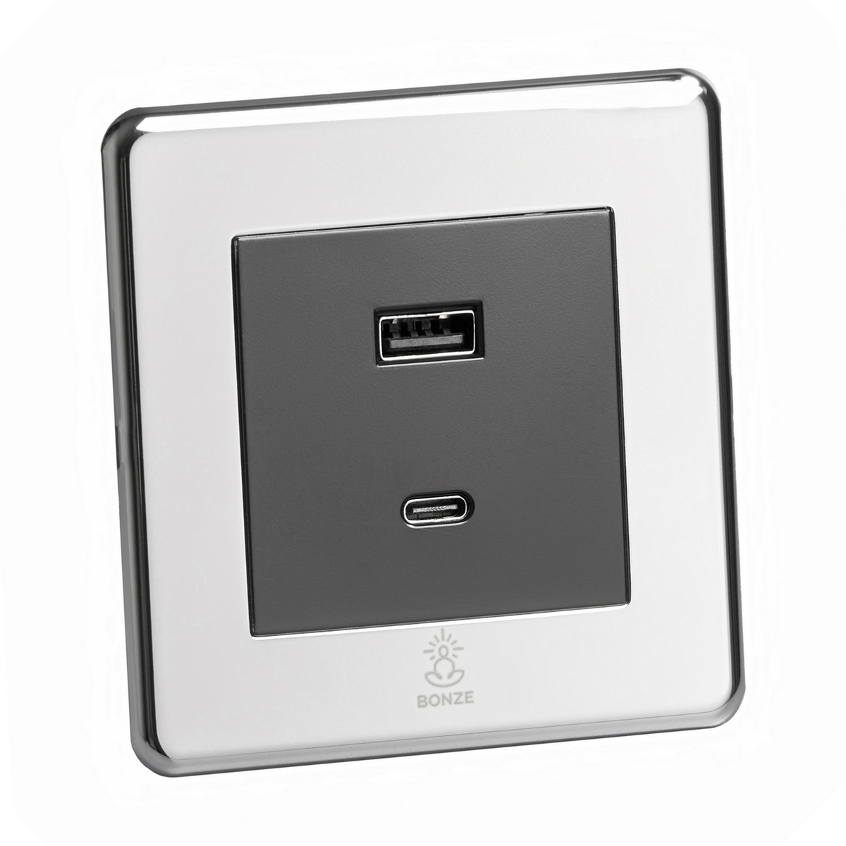 Декоративная розетка USB A + USB C Mira Зеркальный хром, BMCUSBTC Bonze - это прекрасное решение для любого современного интерьера: классика, лофт, модерн, минимализм, винтаж и другие.