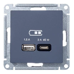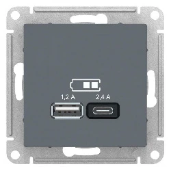 Дизайнерская розетка USB разъем A+A двойная ATN000733 Schneider Electric цвет грифель - это прекрасное решение для любого современного интерьера: классика, лофт, модерн, минимализм, винтаж и другие.
