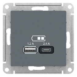 Дизайнерская розетка USB разъем A+C двойная ATN000729 Schneider Electric цвет грифель - это прекрасное решение для любого современного интерьера: классика, лофт, модерн, минимализм, винтаж и другие.