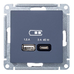 Дизайнерская розетка USB разъем A+C двойная ATN000739 Schneider Electric цвет грифель - это прекрасное решение для любого современного интерьера: классика, лофт, модерн, минимализм, винтаж и другие.