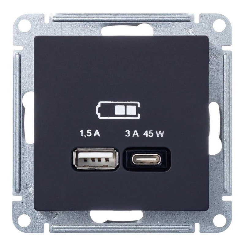 Дизайнерская розетка USB разъем A+C двойная ATN001029 Schneider Electric цвет карбон - это прекрасное решение для любого современного интерьера: классика, лофт, модерн, минимализм, винтаж и другие.