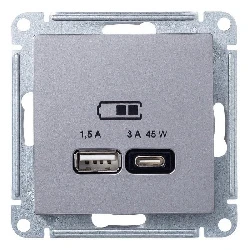 Дизайнерская розетка USB разъем A+C двойная ATN000939 Schneider Electric цвет сталь - это прекрасное решение для любого современного интерьера: классика, лофт, модерн, минимализм, винтаж и другие.