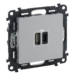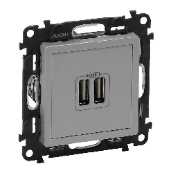 Дизайнерская розетка USB разъем C+C двойная 753307 Legrand цвет алюминий - это прекрасное решение для любого современного интерьера: классика, лофт, модерн, минимализм, винтаж и другие.