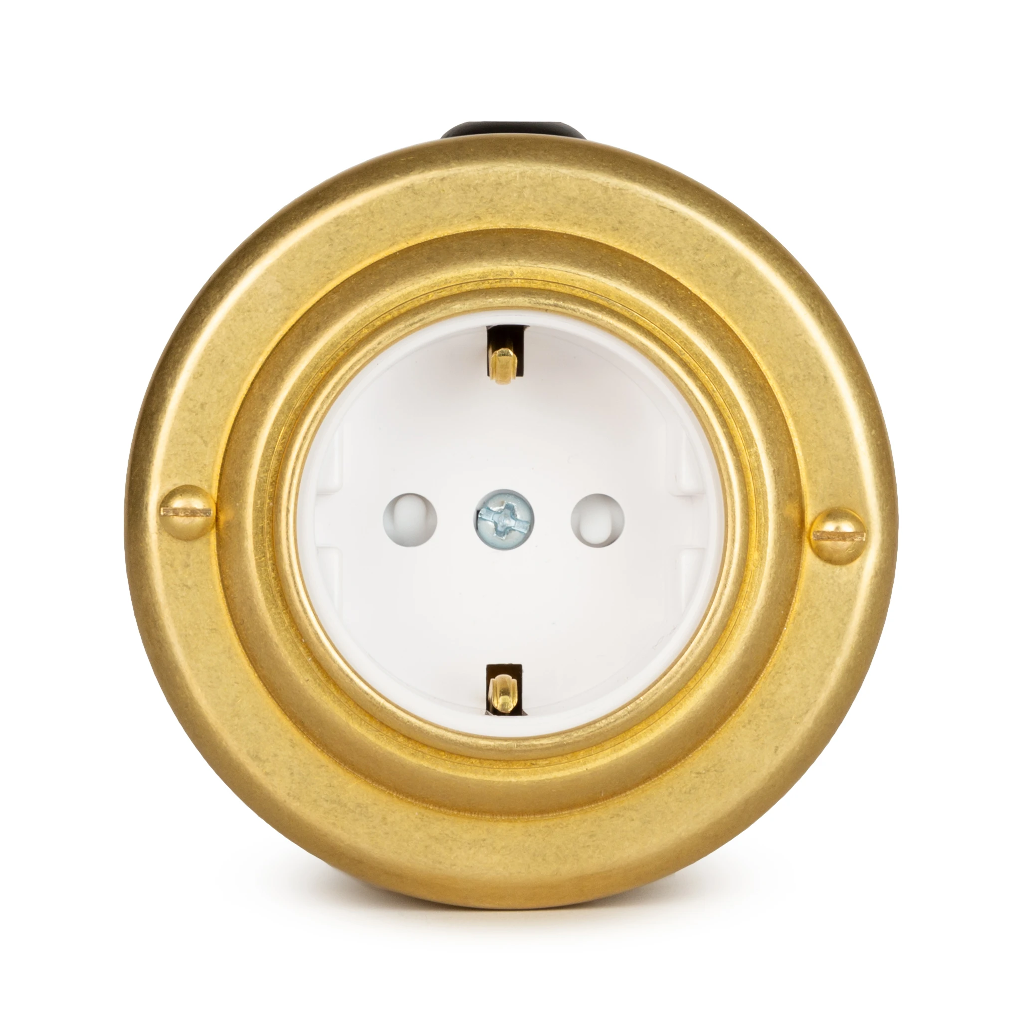 Декоративная ретро розетка электрическая 20101-6 Vintage-Brass цвет золото представляет собой отличное решение для современных и классических интерьеров. Данная модель розетки особенно популярна в интерьерах в стилях ретро, лофт, стимпанк, модерн и минимализм. Винтажная розетка 20101-6 Vintage-Brass цвет золото отвечает всем необходимым стандартам и ГОСТам, имеет сертификат качества. Если у Вас есть чувство вкуса, то при выборе распределительной коробки Вы не сможете пройти мимо ретро данной модели торговой марки Vintage-Brass. Винтажная розетка отлично сочетается в комплектации с наружной ретро проводкой, ретро изоляторами и винтажными выключателями. Основа из качественного металла благородного цвета удовлетворит даже самый притязательный вкус.