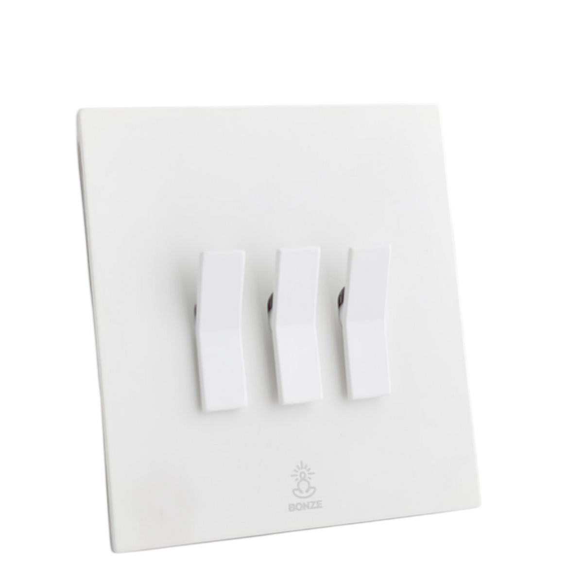 Декоративный выключатель Aura Белый лед, BAW3KBE Bonze трехклавишный - это прекрасное решение для любого современного интерьера: классика, лофт, модерн, минимализм, винтаж и другие.