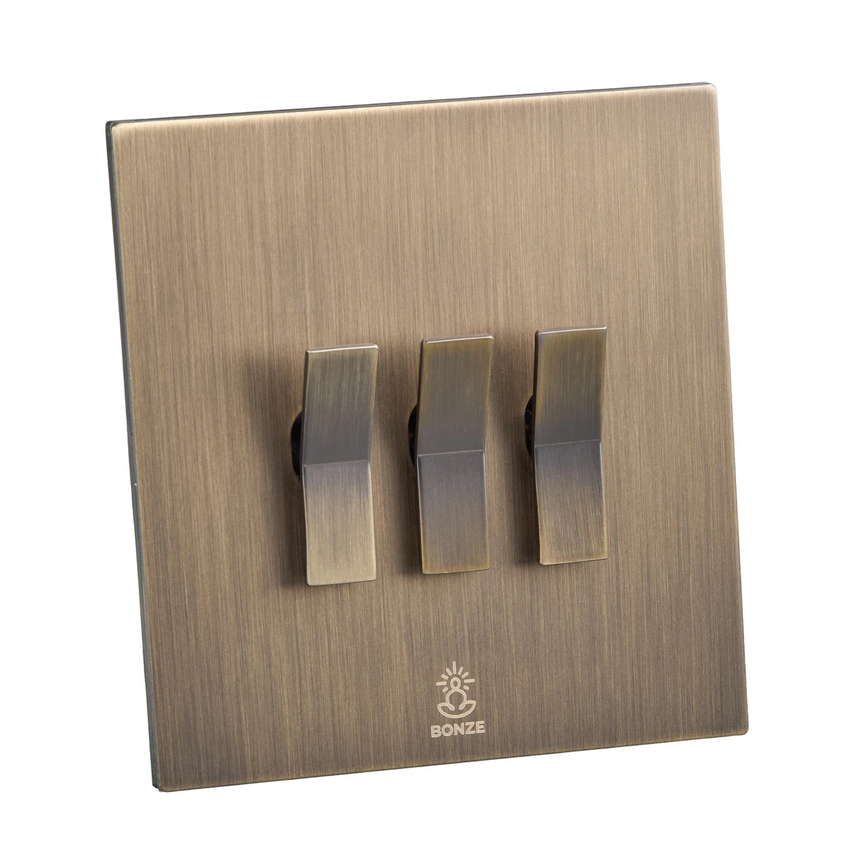 Декоративный выключатель Aura Бронза браш, BABR3KBE Bonze трехклавишный проходной - это прекрасное решение для любого современного интерьера: классика, лофт, модерн, минимализм, винтаж и другие.