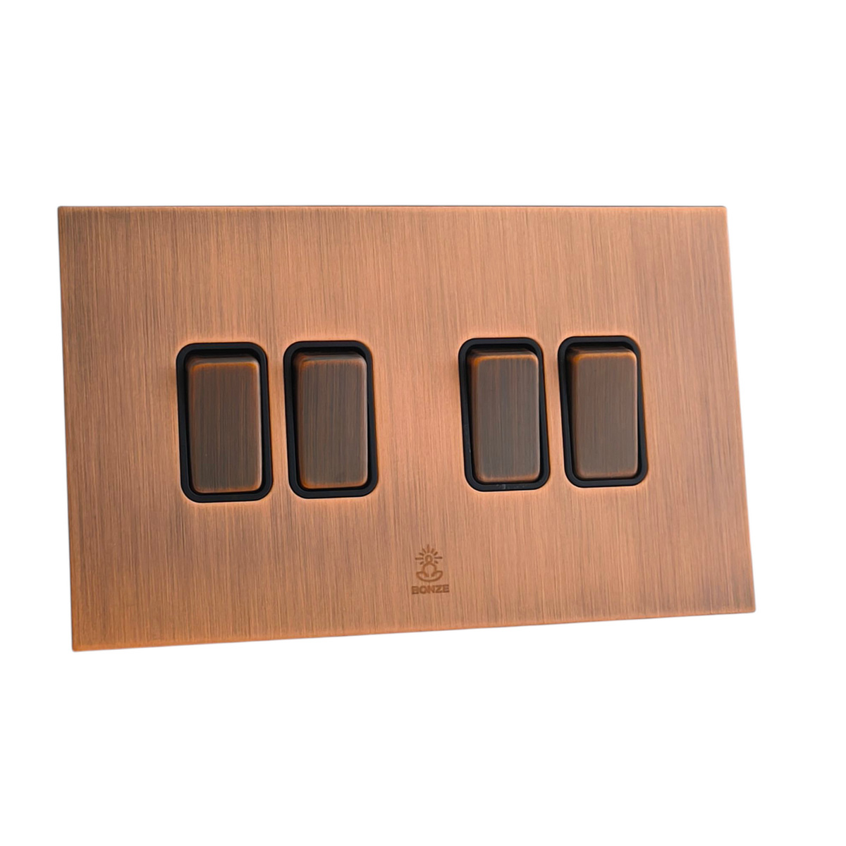 Декоративный выключатель Aura Медь браш, BAC4KB Bonze четырехклавишный проходной - это прекрасное решение для любого современного интерьера: классика, лофт, модерн, минимализм, винтаж и другие.