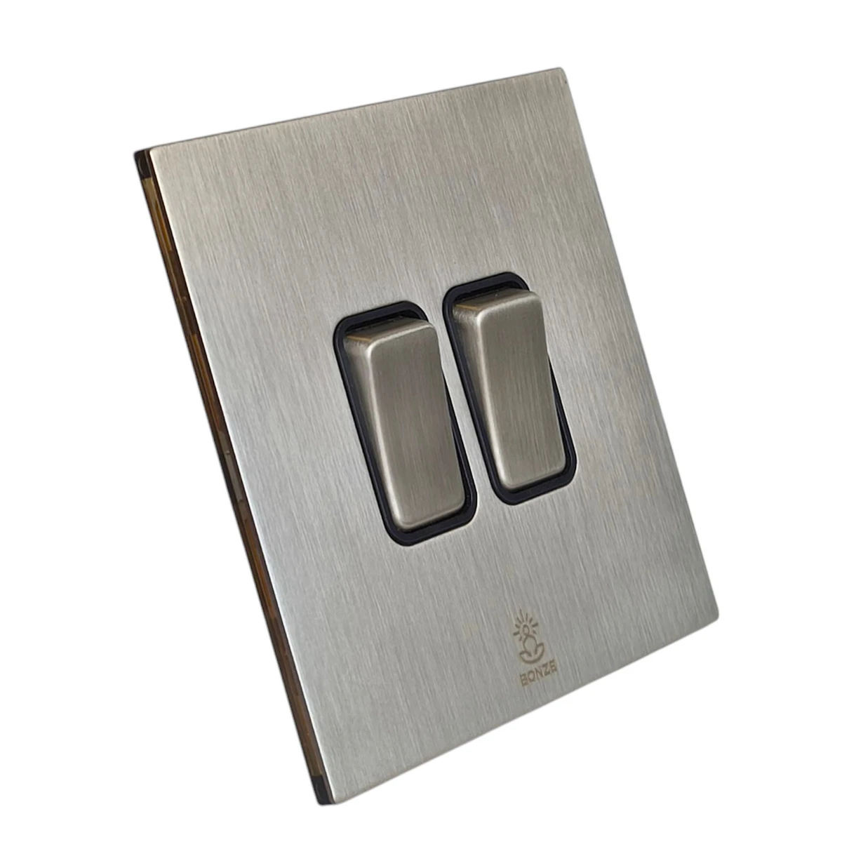 Декоративный выключатель Aura Никель браш, BAN2KB Bonze двухклавишный проходной - это прекрасное решение для любого современного интерьера: классика, лофт, модерн, минимализм, винтаж и другие.