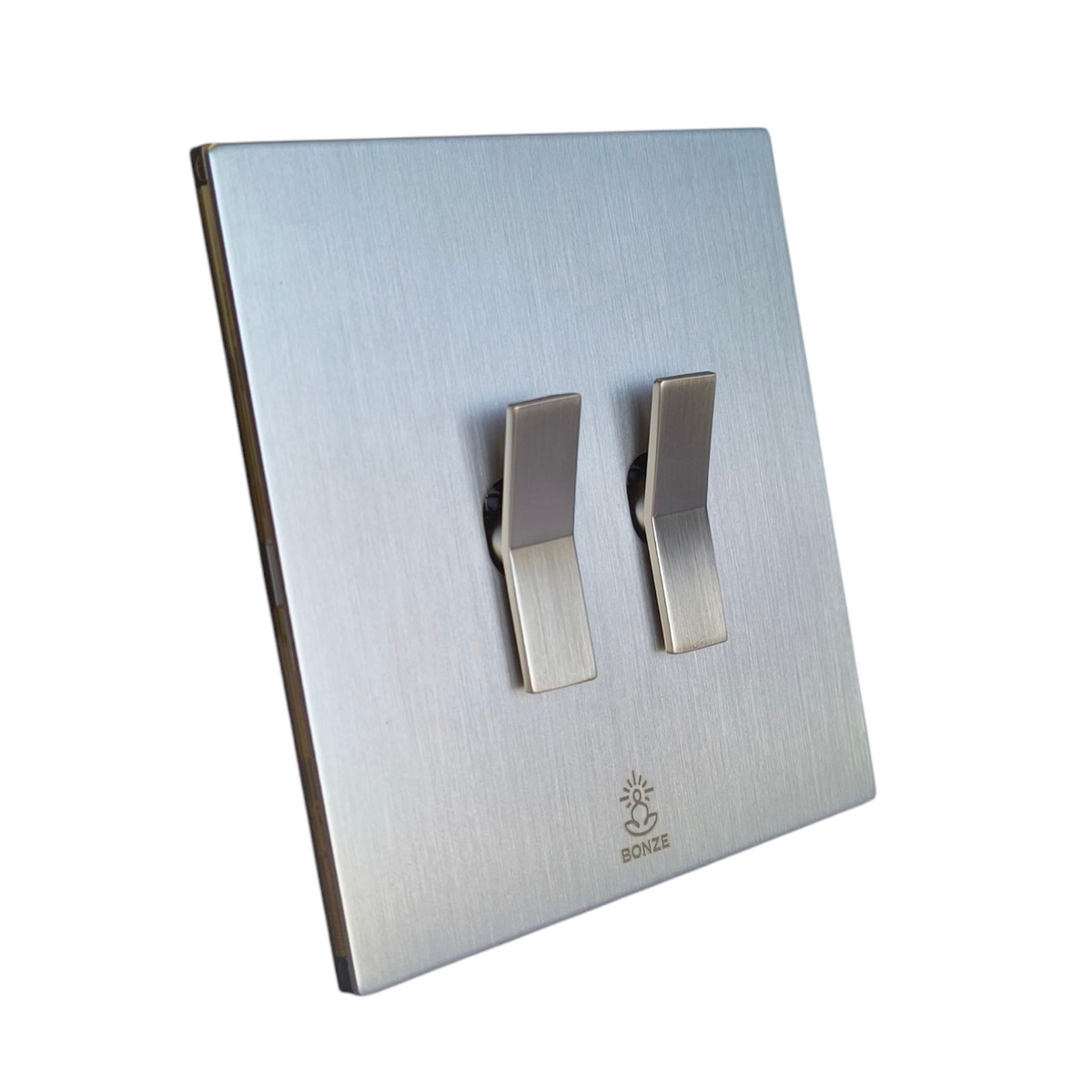 Декоративный выключатель Aura Никель браш, BAN2KBE Bonze двухклавишный - это прекрасное решение для любого современного интерьера: классика, лофт, модерн, минимализм, винтаж и другие.