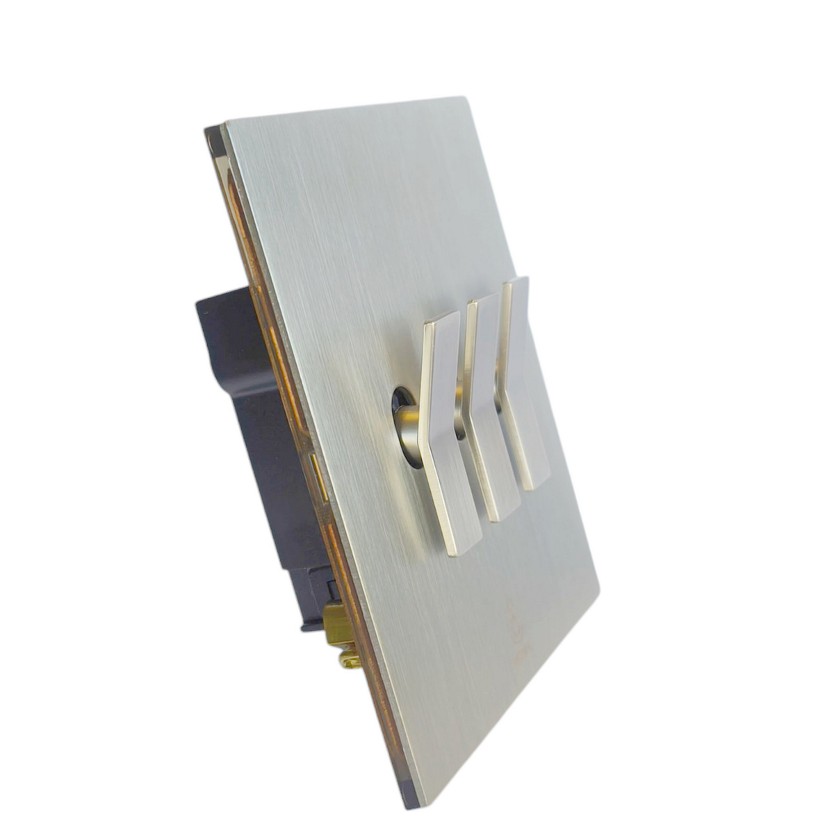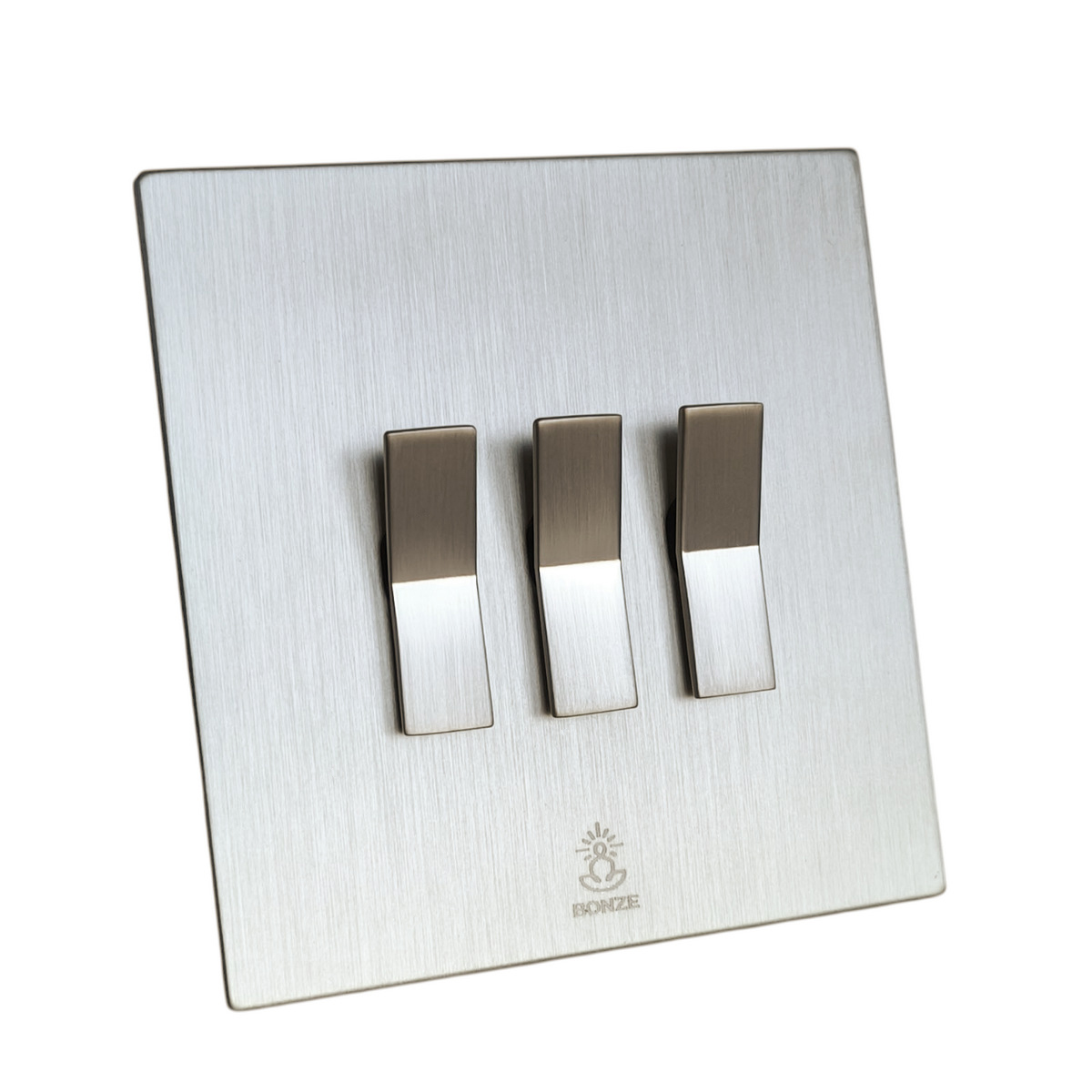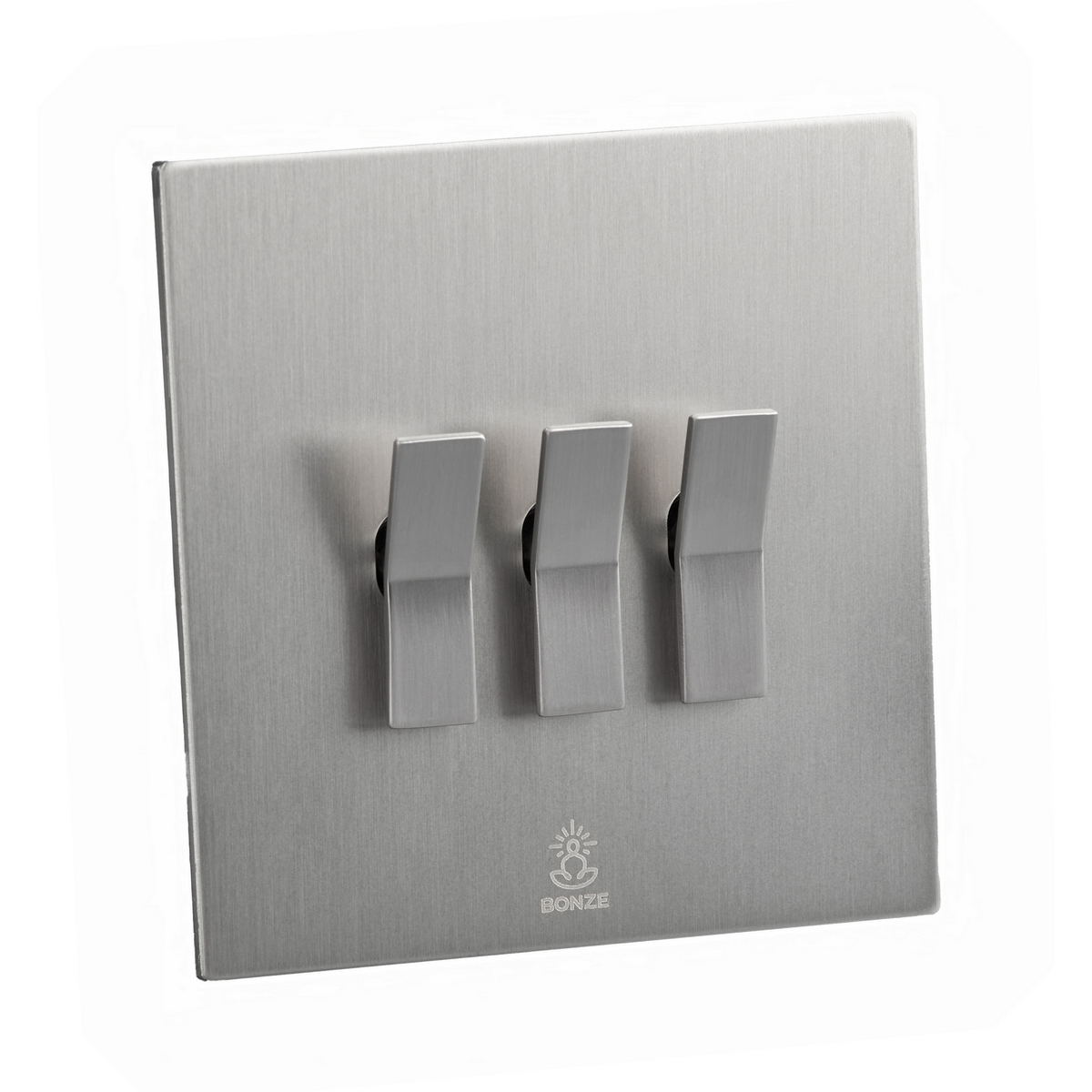 Декоративный выключатель Aura Никель браш, BAN3KBE Bonze трехклавишный проходной - это прекрасное решение для любого современного интерьера: классика, лофт, модерн, минимализм, винтаж и другие.