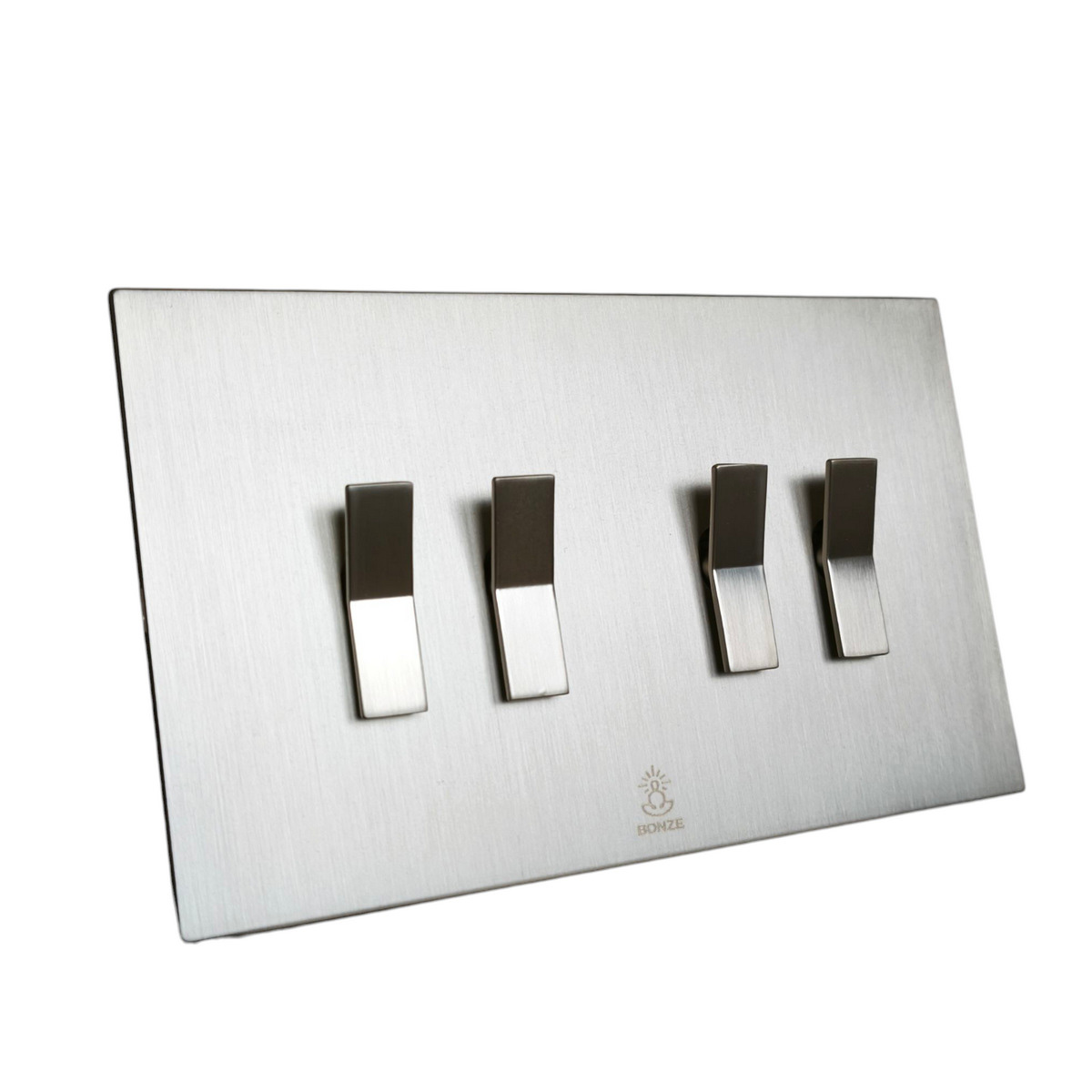 Декоративный выключатель Aura Никель браш, BAN4KBE Bonze четырехклавишный проходной - это прекрасное решение для любого современного интерьера: классика, лофт, модерн, минимализм, винтаж и другие.