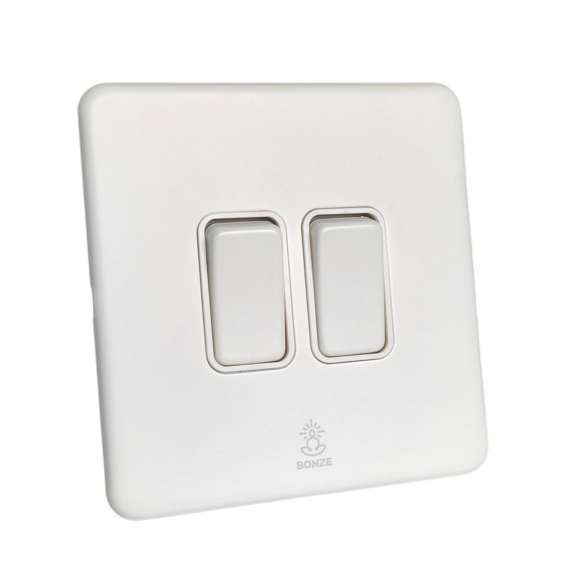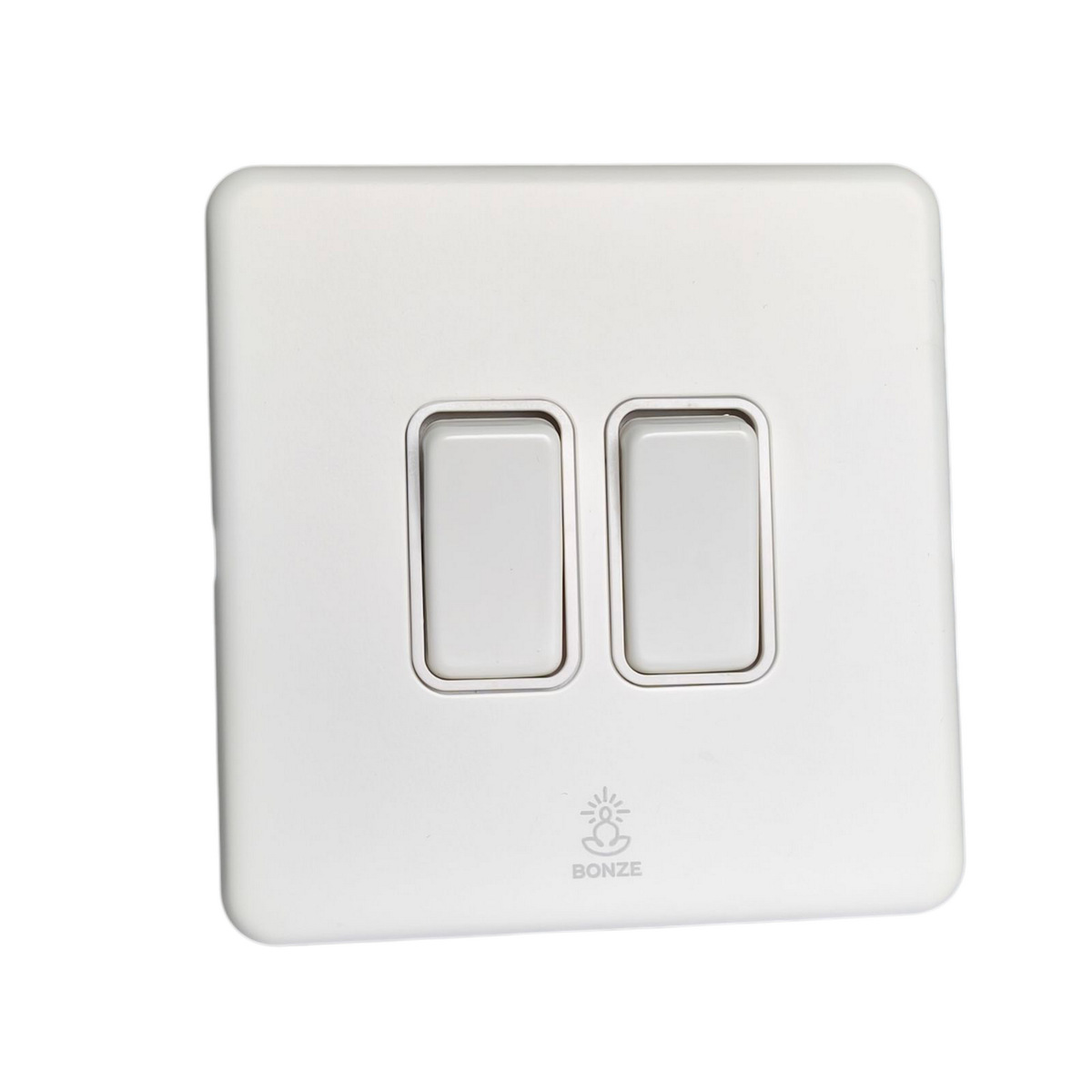 Декоративный выключатель Mira Белый лед, BMW2KB Bonze двухклавишный - это прекрасное решение для любого современного интерьера: классика, лофт, модерн, минимализм, винтаж и другие.