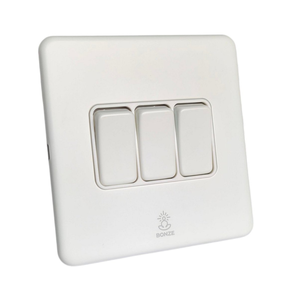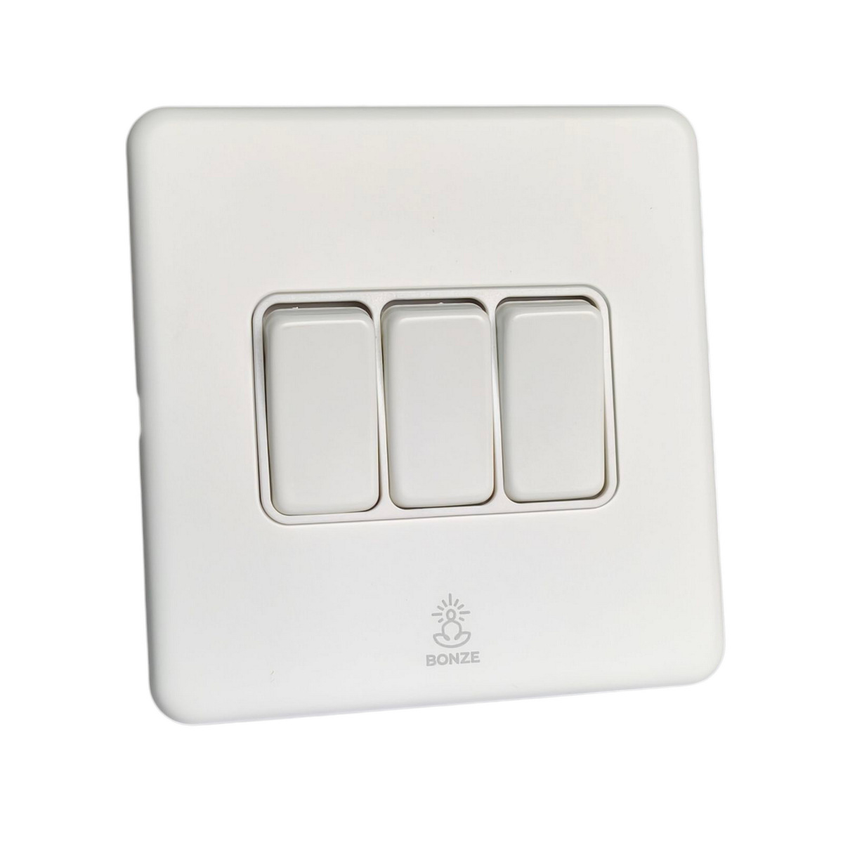Декоративный выключатель Mira Белый лед, BMW3KB Bonze трехклавишный - это прекрасное решение для любого современного интерьера: классика, лофт, модерн, минимализм, винтаж и другие.