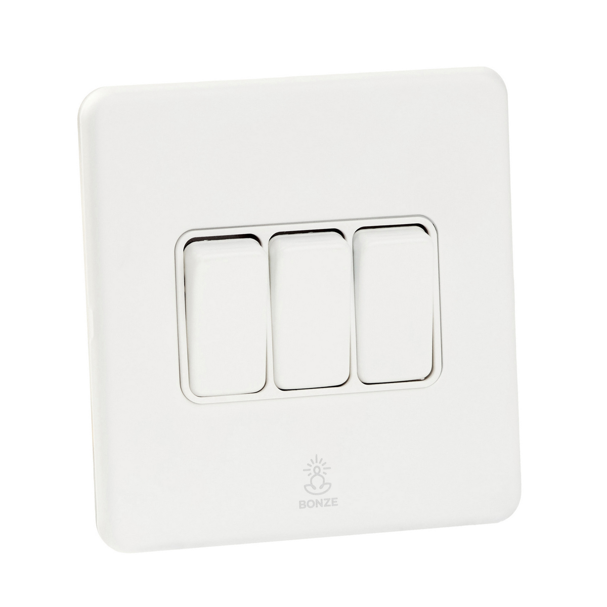 Декоративный выключатель Mira Белый лед, BMW3KB Bonze трехклавишный проходной - это прекрасное решение для любого современного интерьера: классика, лофт, модерн, минимализм, винтаж и другие.
