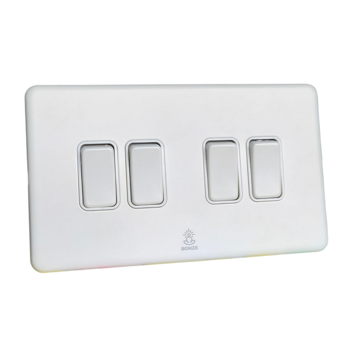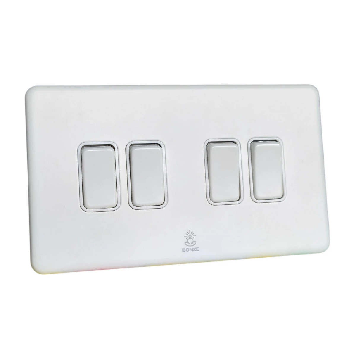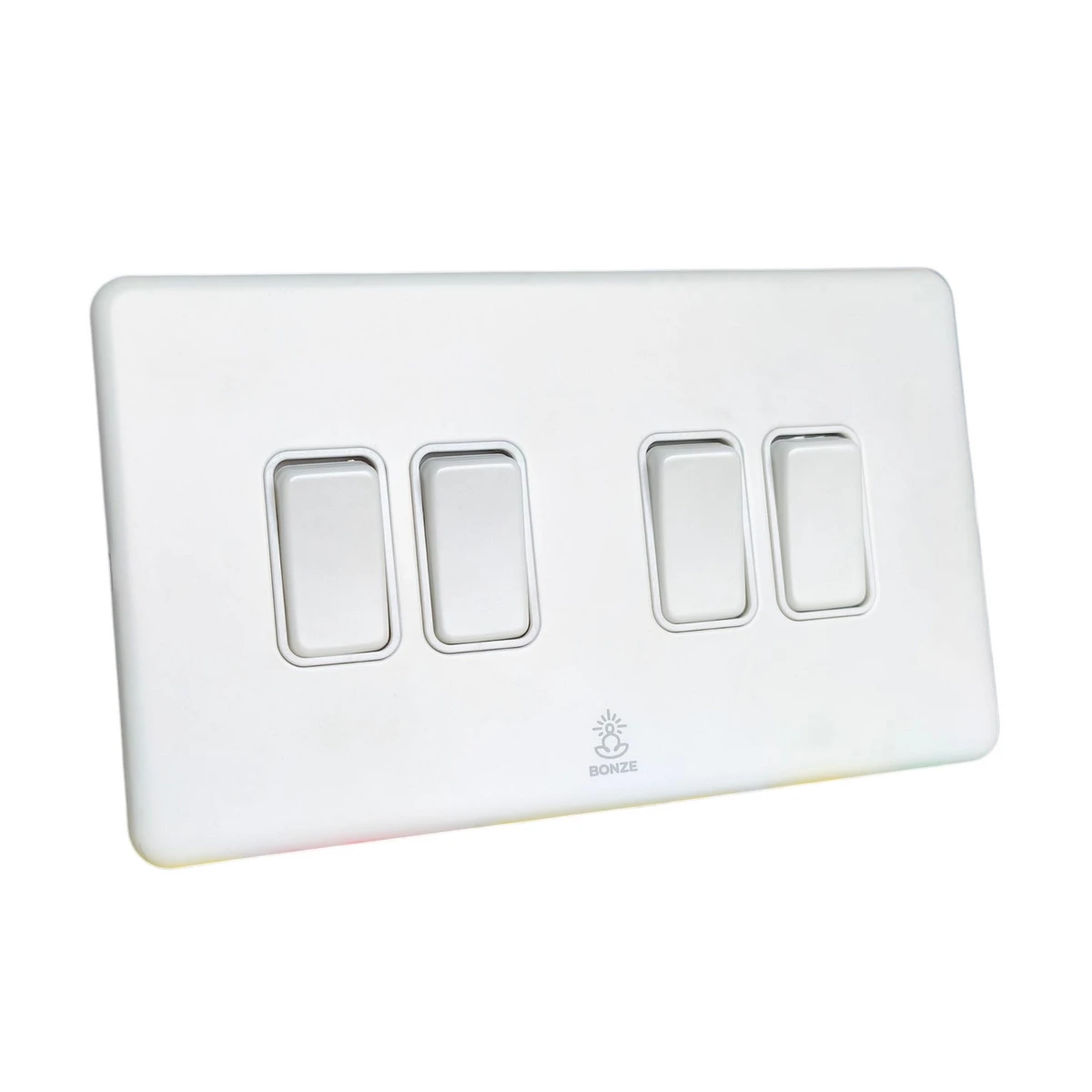 Декоративный выключатель Mira Белый лед, BMW4KB Bonze четырехклавишный проходной - это прекрасное решение для любого современного интерьера: классика, лофт, модерн, минимализм, винтаж и другие.