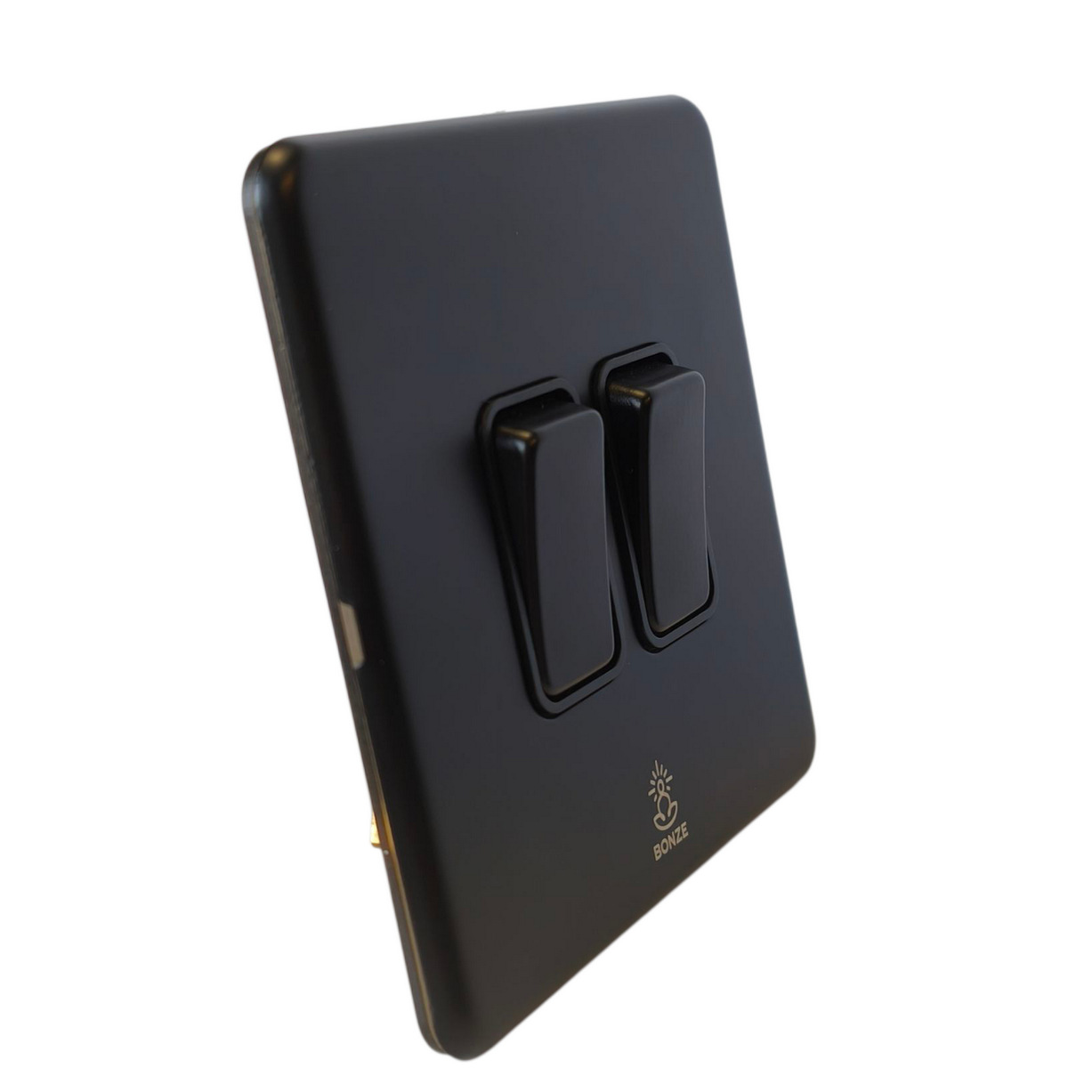 Декоративный выключатель Mira Черный уголь, BMB2KB Bonze двухклавишный - это прекрасное решение для любого современного интерьера: классика, лофт, модерн, минимализм, винтаж и другие.