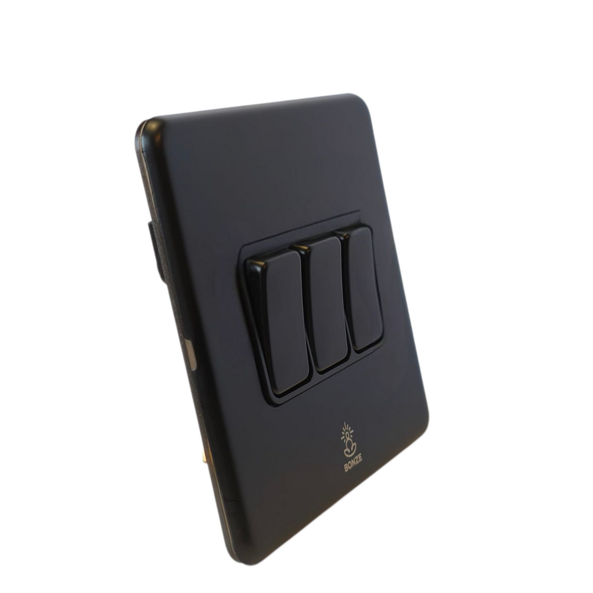 Декоративный выключатель Mira Черный уголь, BMB3KB Bonze трехклавишный - это прекрасное решение для любого современного интерьера: классика, лофт, модерн, минимализм, винтаж и другие.