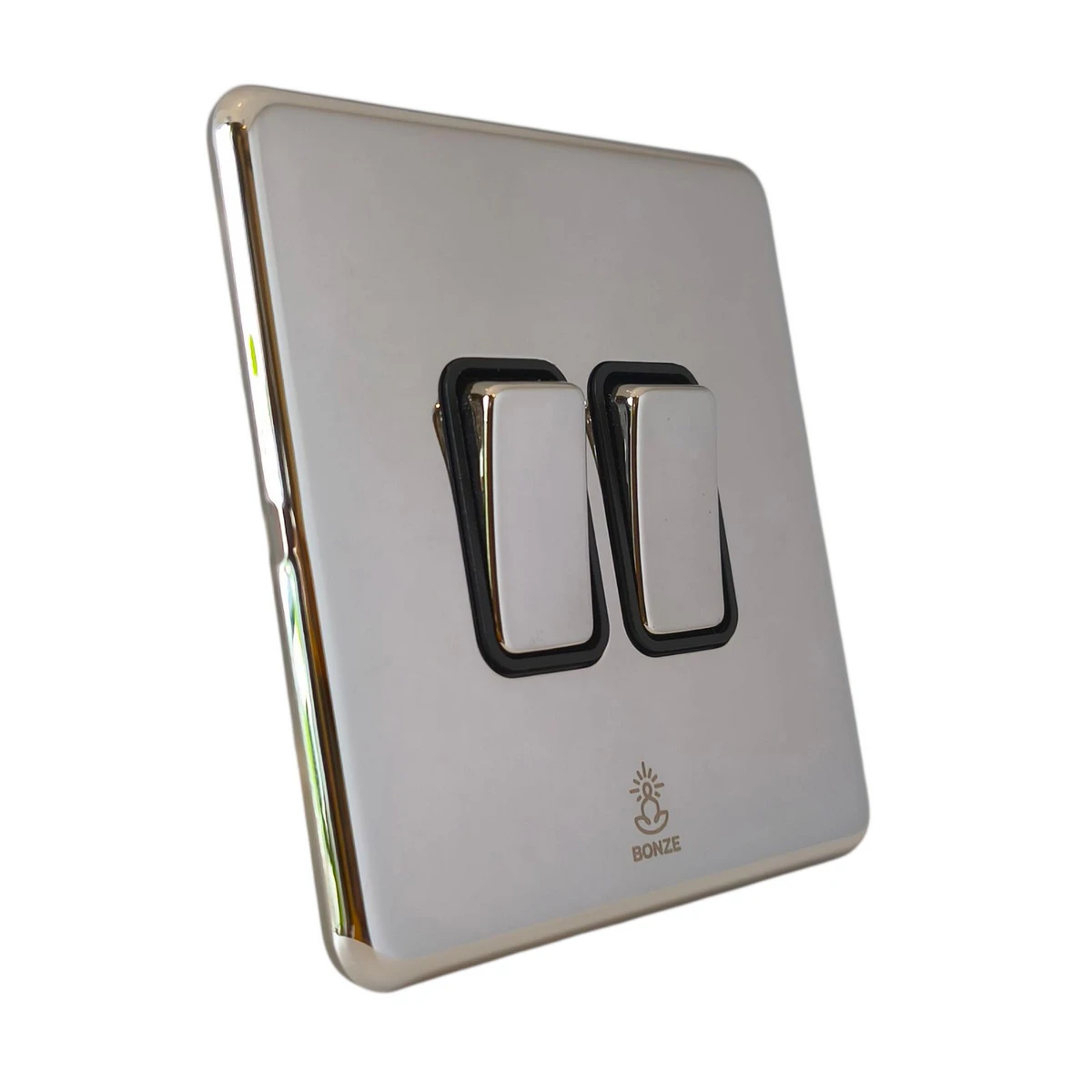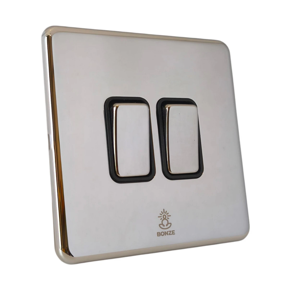 Декоративный выключатель Mira Зеркальный хром, BMC2KB Bonze двухклавишный - это прекрасное решение для любого современного интерьера: классика, лофт, модерн, минимализм, винтаж и другие.