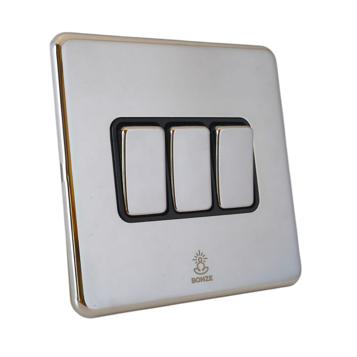 Декоративный выключатель Mira Зеркальный хром, BMC3KB Bonze трехклавишный - это прекрасное решение для любого современного интерьера: классика, лофт, модерн, минимализм, винтаж и другие.