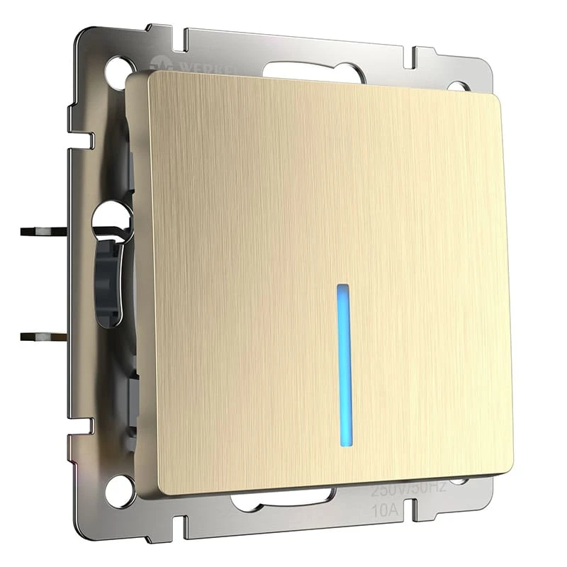 Дизайнерский выключатель с подсветкой W1112110 шампань рифленый бренд Werkel является отличным решением для современных пространств. Данная модель будет эффектно смотреться в любом интерьере и гармонично сочетаться с любыми материалами. Выключатель Werkel отвечает всем необходимым стандартам и ГОСТам, имеет высокое качество, подтверждённое сертификатами соответствия.Дизайнерские модели достаточно просто монтировать с рамками при помощи клипс Easy Click. Современные выключатели Werkel гармонично впишутся как в городских квартирах, так и в загородных домах, дачах.