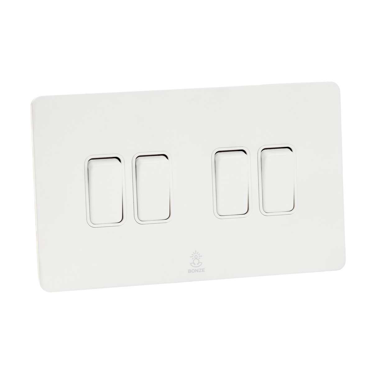Декоративный выключатель Vega Белый лед, BVW4KB Bonze четырехклавишный проходной - это прекрасное решение для любого современного интерьера: классика, лофт, модерн, минимализм, винтаж и другие.
