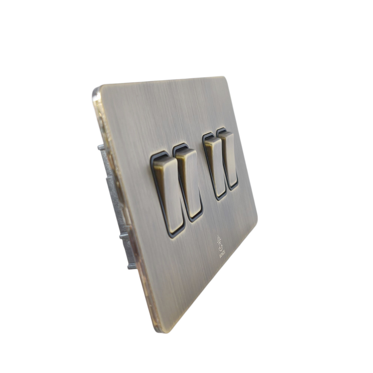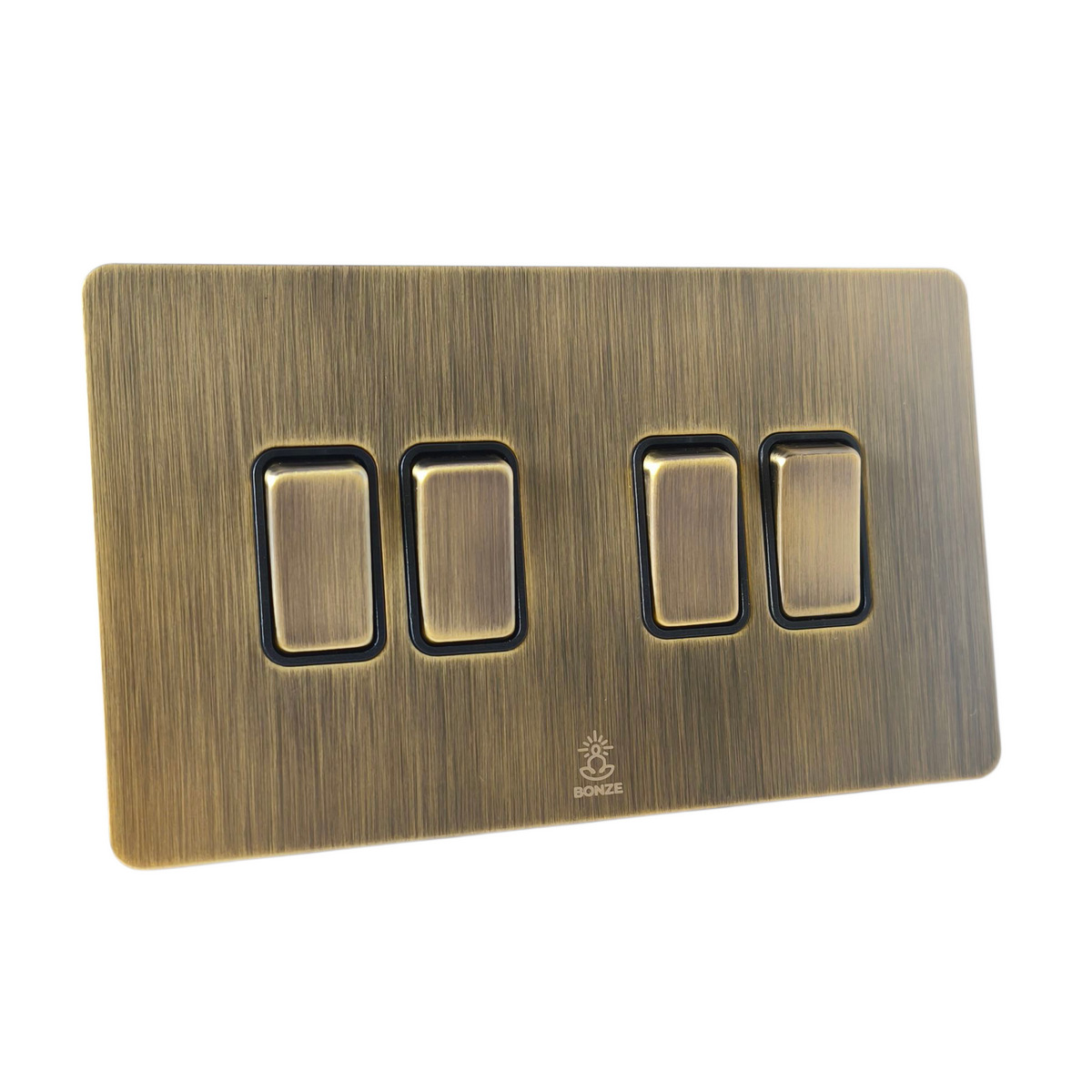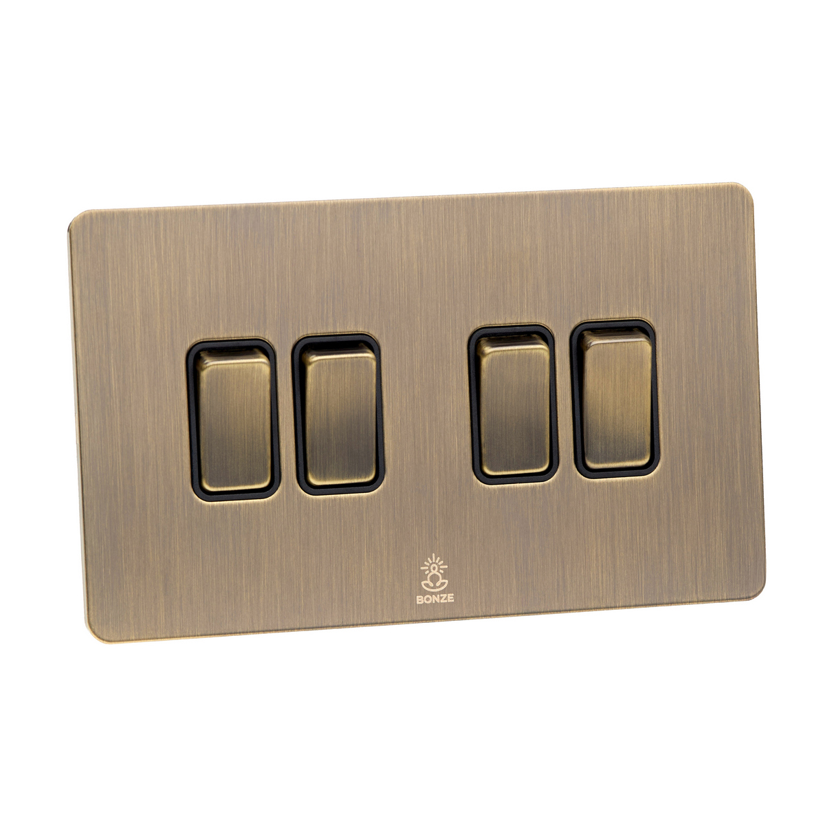 Декоративный выключатель Vega Бронза браш, BVBR4KB Bonze четырехклавишный проходной - это прекрасное решение для любого современного интерьера: классика, лофт, модерн, минимализм, винтаж и другие.