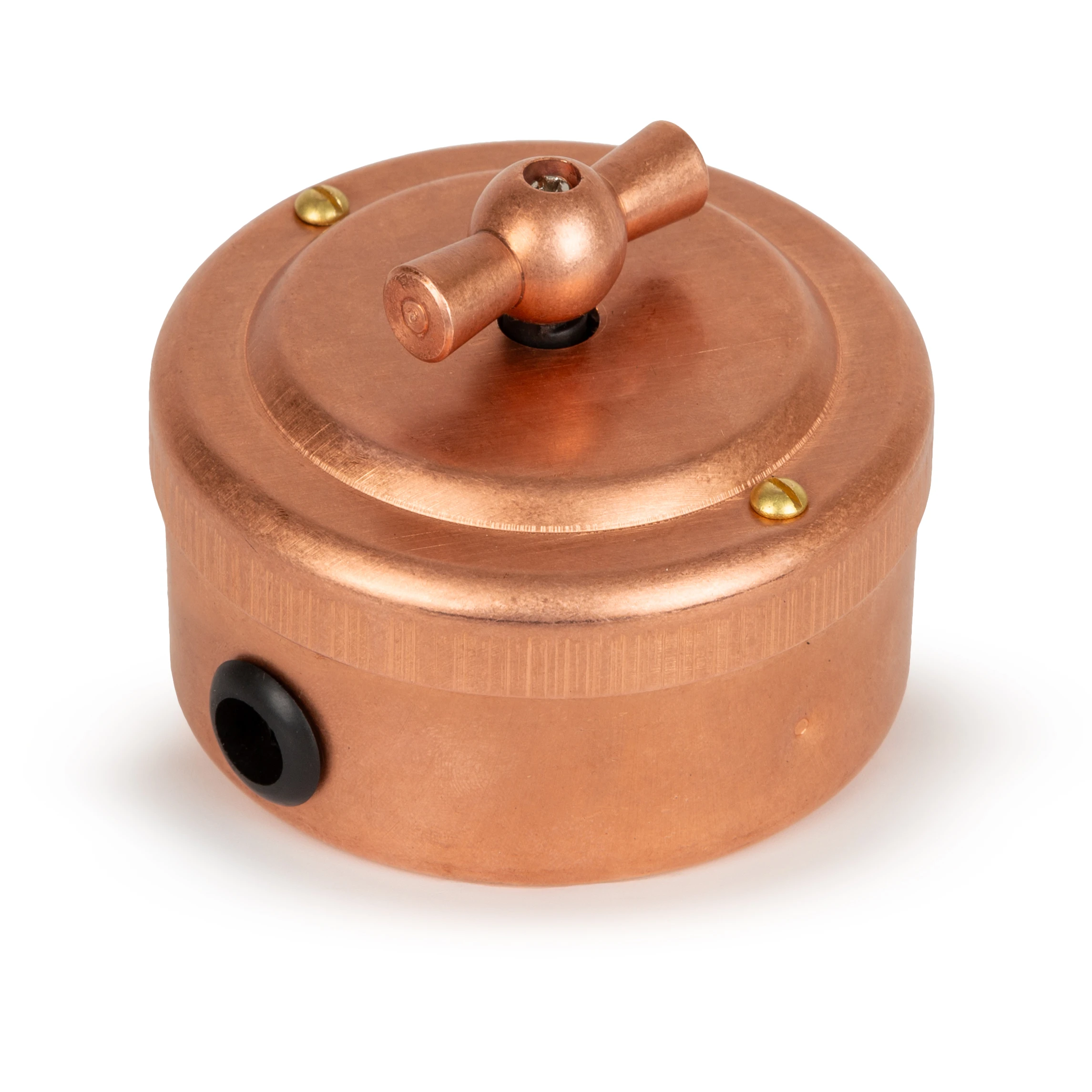 Ретро выключатель пластиковый Vintage-Brass цвет медь прекрасно подходит для современных интерьерных решений. Винтажный выключатель Vintage-Brass 30201-7 отменного качества. Он разработан с учётом всех современных требований, стандартов и ГОСТов.Так как медь - один из самых популярных цветов. Поэтому не удивительно, что такой ретро выключатель наиболее часто используется дизайнерами, как при классических интерьерных решениях, так и в стилях лофт, стимпанк, эко. Данный ретро выключатель прекрасно сочетается в комплектации с интерьерными ретро проводами, наружными латунными трубками или даже с внутренней скрытой проводкой.