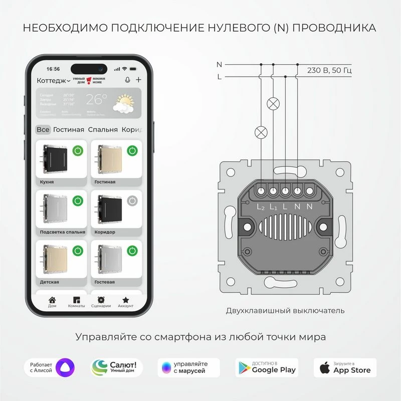 Умный сенсорный выключатель W4523006 серебряный бренд Werkel является отличным решением для современных пространств. Данная модель имеет уникальный дизайн, который востребован в различных интерьерах: лофт, стимпанк и минимализм. Выключатель Werkel отвечает всем необходимым стандартам и ГОСТам, имеет высокое качество, подтверждённое сертификатами соответствия.Дизайнерские модели достаточно просто монтировать, так как механизмы легко устанавливаются без дополнительных этапов подготовки. Современные выключатели Werkel гармонично впишутся как в городских квартирах, так и в загородных домах, дачах. Умные сенсорные выключатели Werkel, являющиеся частью экосистемы Minimir Home, позволяют управлять светильниками со смартфона или голосом. Например, можно настроить автоматическое включение света в зависимости от времени захода солнца или включение освещения при вашем приближении к дому, задействовав функцию геолокации. Умные выключатели, кроме функции обычного выключателя, могут выполнять роль проходного, перекрёстного и мастер-выключателя.